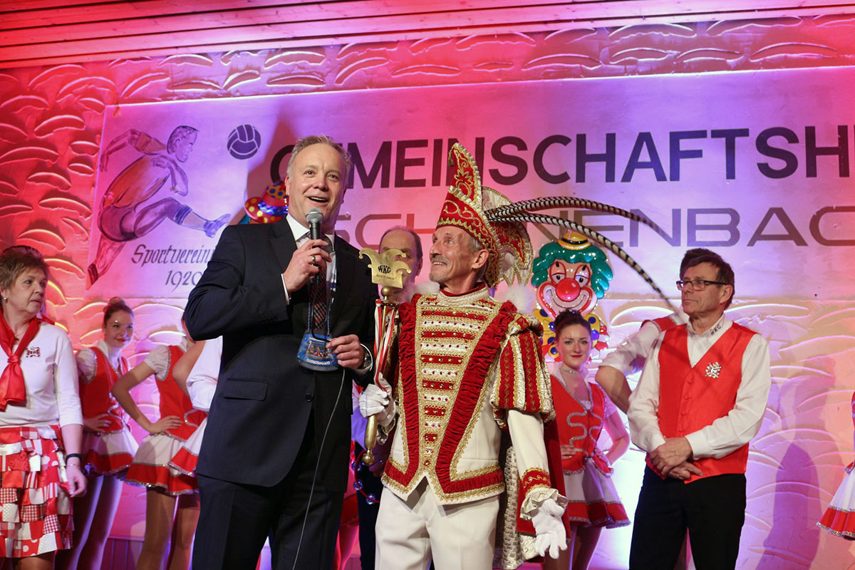 Seitdem der 60-Jährige persönlicher Adjutant von “ Prinz Ingo I.“ war, liebäugelte er schon immer damit „einmol Prinz zo sin.“ Besonders stolz ist der Hermesdorfer, dass er im „Jubiläumsjahr“ des „10. Karnevalszugs der WKG“ Tollität sein darf. Es herrschte super Stimmung bei der Proklamation im voll besetzen Schönenbacher Dorfhaus, zu der zahlreiche Gäste angereist waren, um mit der KG ihren neuen Prinzen zu feiern. Pünktlich, um 19:11 Uhr, begrüßte Sitzungspräsident Henning Hergt die Abordnungen befreundeter Karnevalsvereine aus Wildberg, Denklingen, Schönenbach, Bielstein, Wilkenroth und Ösinghausen und kündigte die Minigarde Rot-Weiß 88-02 an, die mit schmissigen Tänzen begeisterte.