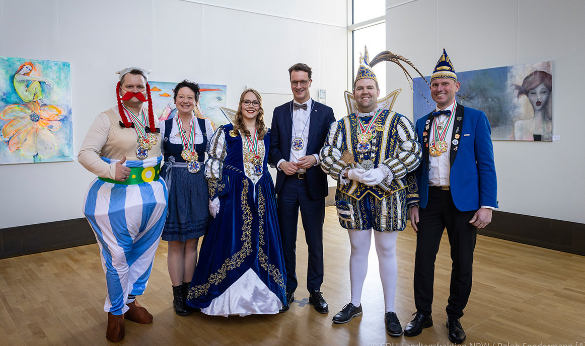 Prinzessin Alina und Prinz Tim I. von der Narrenzunft in Wipperfürth-Neye haben gestern beim „Närrischen Landtag“ auf Einladung des CDU-Landtagsabgeordneten Christian Berger samt Gefolge gefeiert. Nach Aufruf von Landtagspräsident André Kuper kamen 166 Jecke ins Parlament am Düsseldorfer Rheinufer, heißt es in einer Mitteilung von Christian Berger.