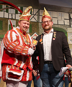 [Bürgermeister Lukas Miebach hatte gestern erstmals die Ehre, einen Karnevalsprinzen in Amt und Würden zu setzen.]