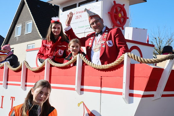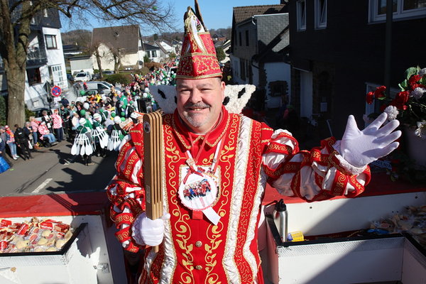 Ganz aus dem Häuschen war auch Prinz Markus aus dem Hause Scherer. „Es ist einfach unglaublich überwältigend“, beschrieb er seine Gefühlslage. Mit seinem Schmölzchen genoss er sichtlich das Bad in Menge. Viel Spaß hatte auch das Kinderprinzenpaar Sophie und Filip, beide hatten einen Ehrenplatz auf dem Zugführerwagen erhalten.
