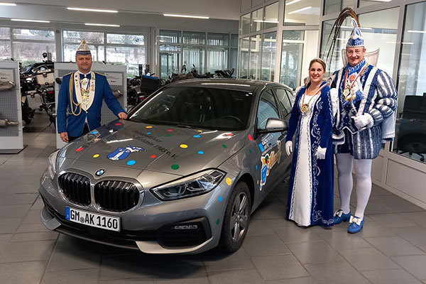 Schöne Traditionen soll man pflegen: So unterstützen Fahrzeuge von BMW Kaltenbach auch in diesem Jahr die oberbergischen Tollitäten aus Engelskirchen, Denklingen und Bielstein. Dies teilt der Karnvalsverein Bielstein mit. Am Samstag fand die obligatorische Fahrzeugübergabe bei BMW Kaltenbach in Overath-Vilkerath statt. Ressortleitung Neufahrzeuge Dennis Spexard überreichte den Vereinen die Fahrzeuge.