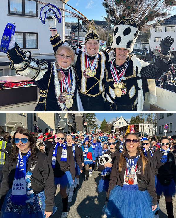 Aus der direkten Nachbarschaft machten die 40 Tänzer der Burggarde der KG Rot-Weiß Denklingen ihre Aufwartung und die Baumeister-Bobs aus Obersaurenbach gingen auf ihrem motorisierten Bauwagen steil. Mit Prinzessin Lisa I., Prinz Jona I. in Begleitung ihres Hofstaates und der legendären „Määäääädchen“ war eine große Delegation aus dem Waldbröler Ortsteil Schönenbach ins Stadtzentrum gereist. Frei nach dem Höhner-Motto „Mir kumme mit allemann vorbei“ gab sich das Damendreigestirn der KG „Tolle Elf“ Wildberg, samt Präsident Georg Freund, Großer Garde, Teenie-Garde und Mini-Garde die Ehre. Rot-Weiße Sahnehaube auf einem wirklich imposanten WKG-Karnevalsumzug waren die Gastgeber selbst, deren vier Tanzgarden zum Umzugsfinale schunkelnd den Prinzenwagen mit Prinzessin Emely I., dem WKG-Vorstand und Waldbröls Bürgermeisterin Larissa Weber eskortierten. Ein Sonderlob verdiente sich Zugleiter und Tausendsassa Manuel Salz, in dessen Händen erstmals die Verantwortung für das Gelingen des Groß-Events lag.