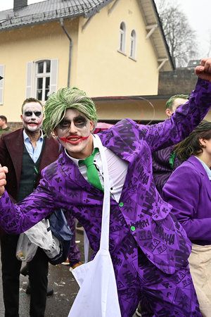 Auffallend: Gleich mehrere Wagen feierten neben dem Karneval an sich vor allem das Dorfleben. „Du bist Stadtkind, du bist Styler. Ich bin Dorfkind und viel geiler“ hieß es unter anderem. Für einen Farbtupfer der anderen Art sorgten derweil die 'Ründerother Chaoten', die sich unter dem Motto „Sehn wir so aus als würden wir scherzen“ kollektiv als Joker aus der The-Dark-Knight-Trilogie kostümiert hatten.