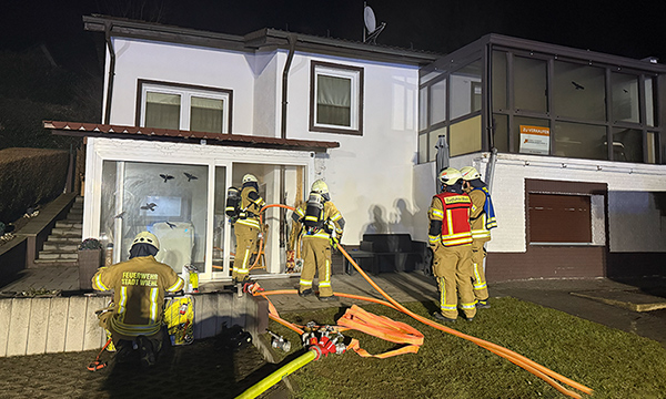 Wiehl - Ein Bett stand aus ungeklärter Ursache in Flammen - Haus wurde nach Feuer als vorerst nicht bewohnbar eingestuft.