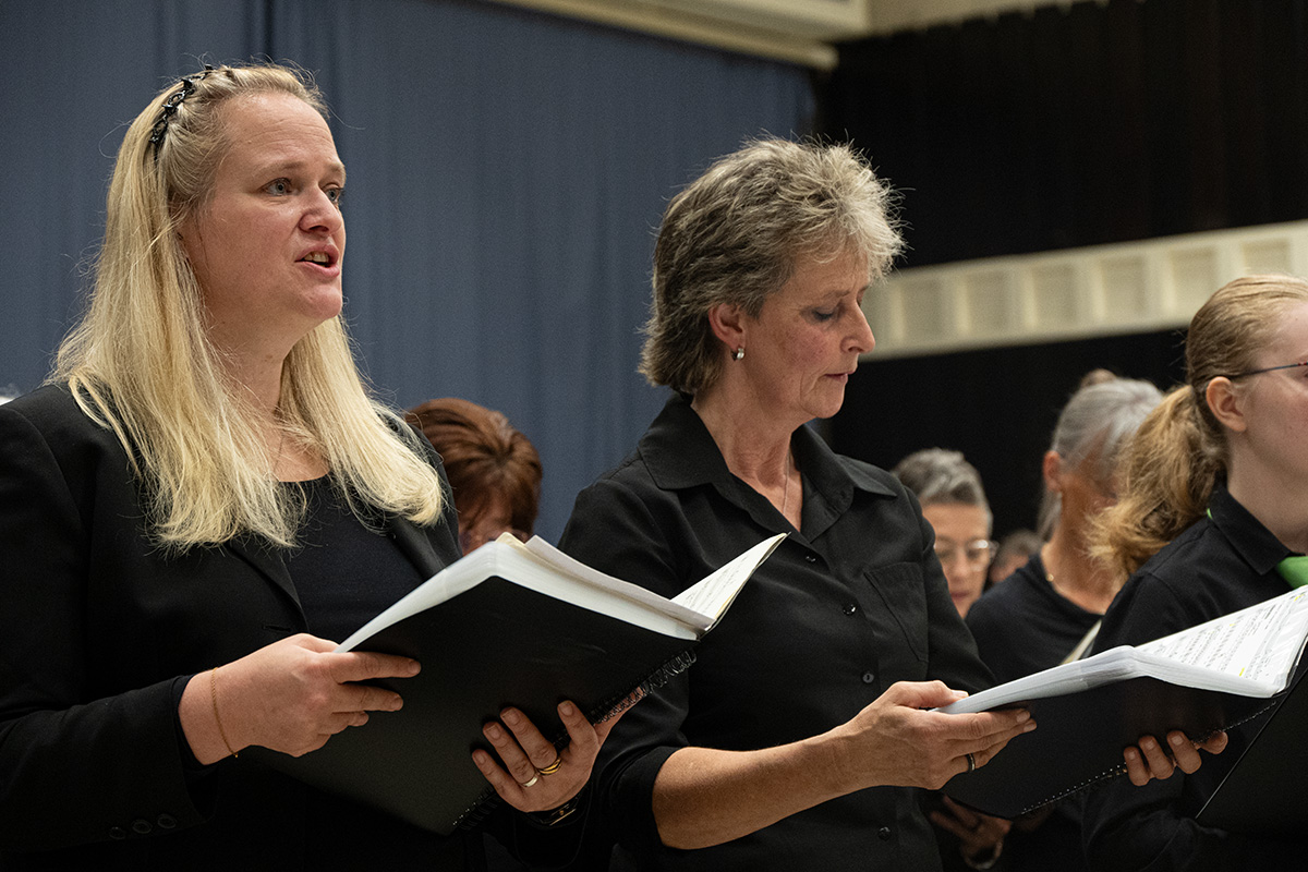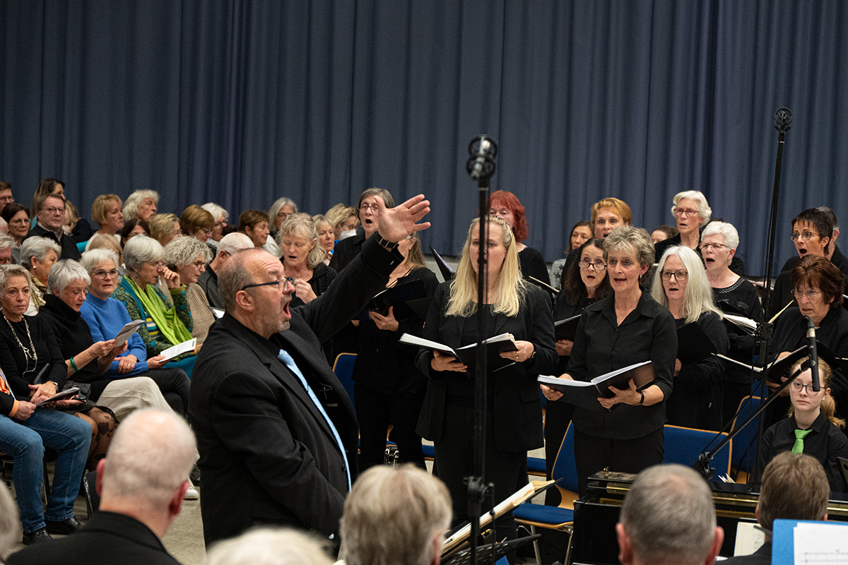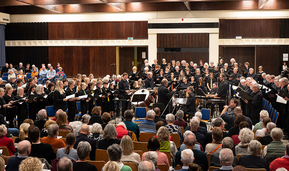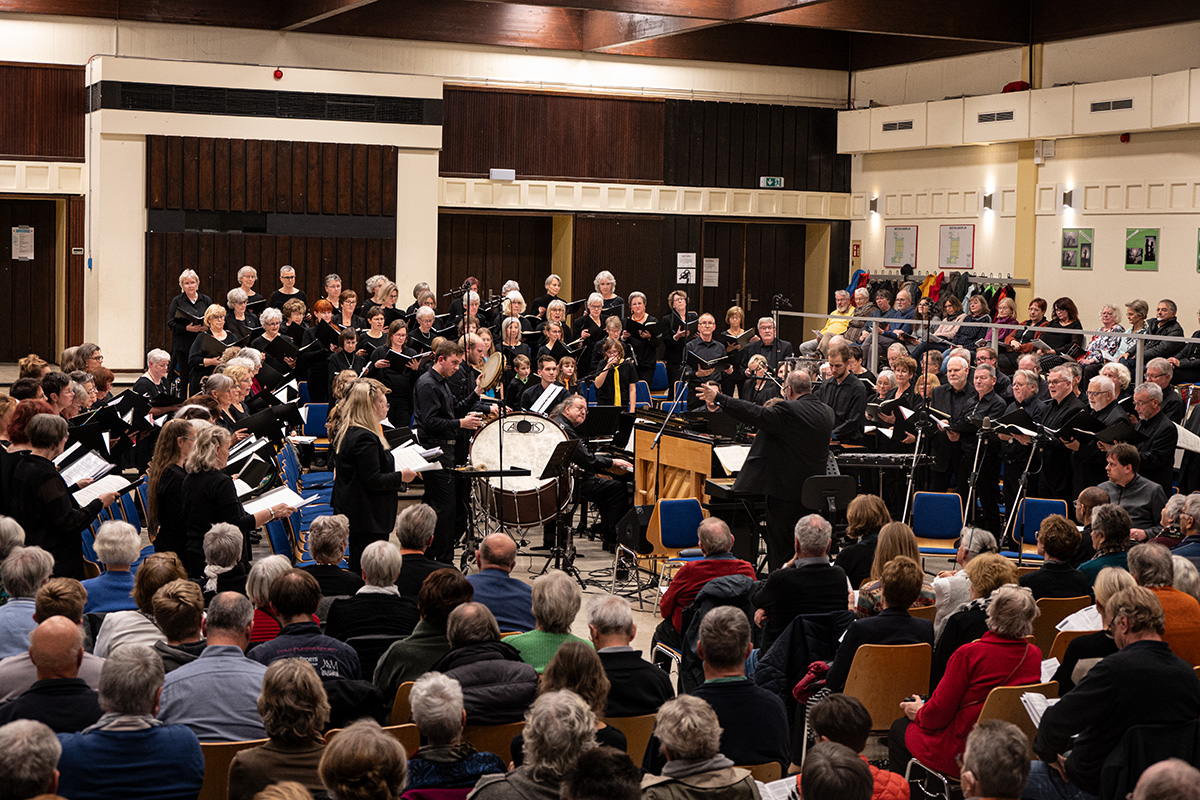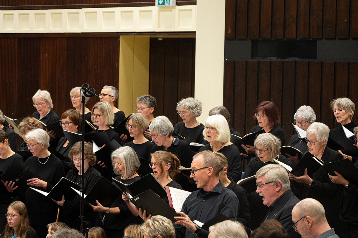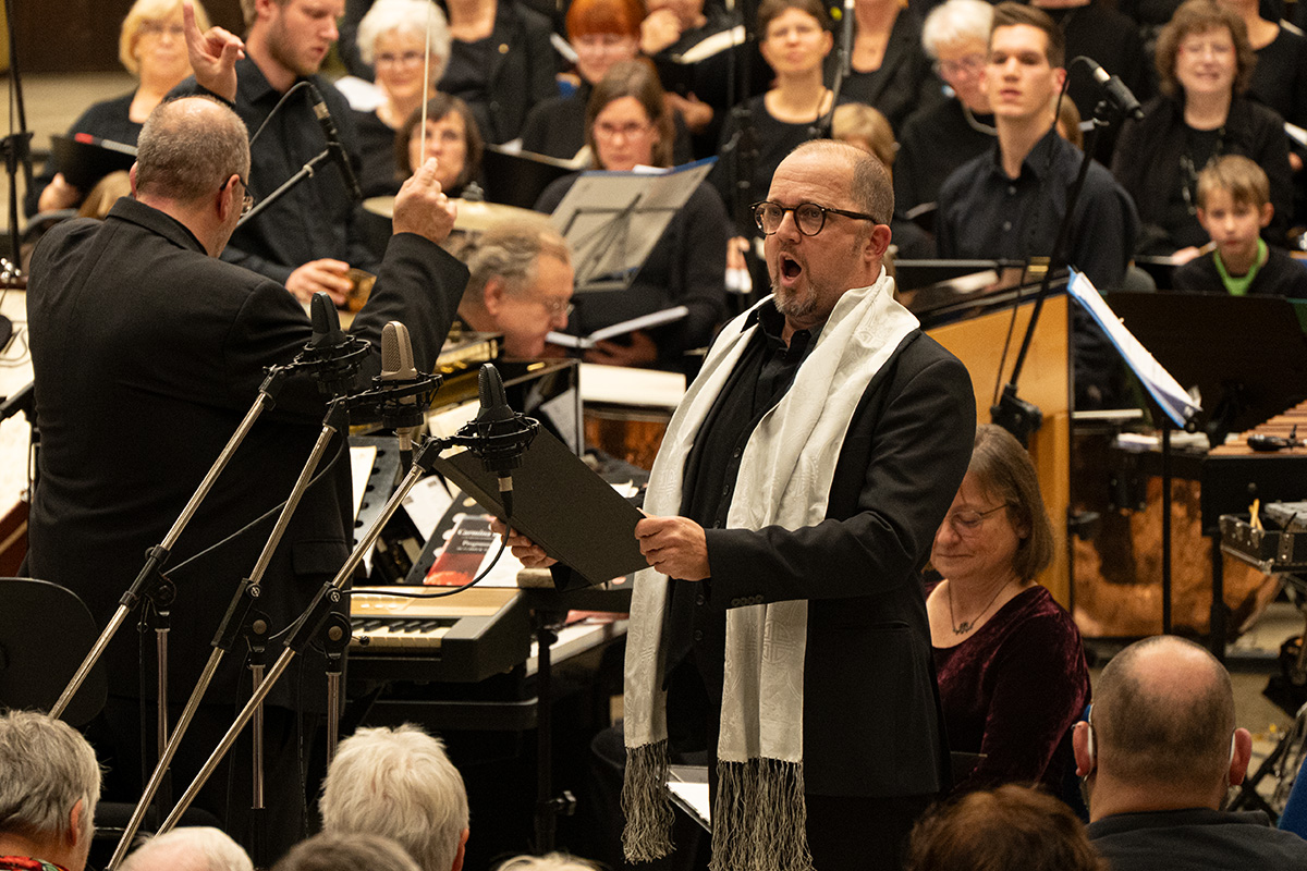 [Dr. Dirk van Betteray realisierte wieder einmal ein brillantes Projekt mit einem großen Aufgebot an Sängerinnen und Sängern, die auf die kleinsten Bewegungen des Dirigenten reagierten.]