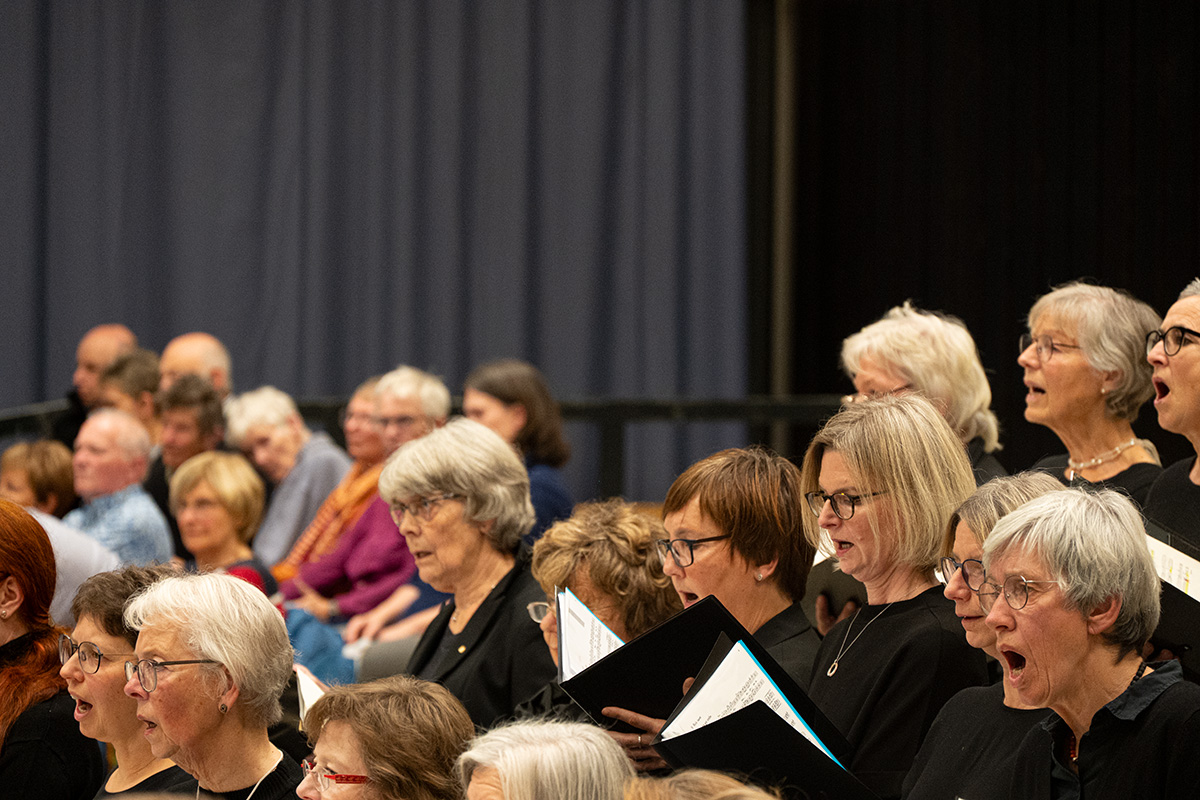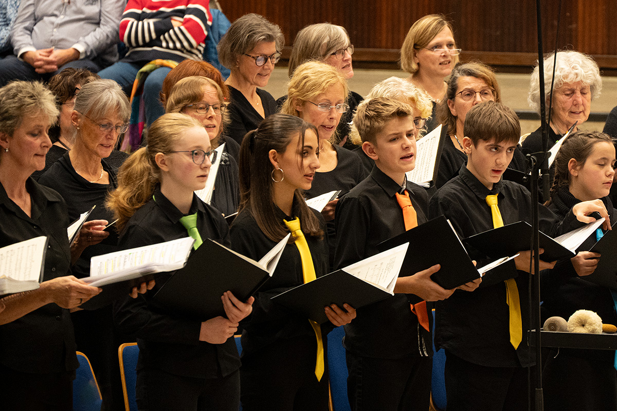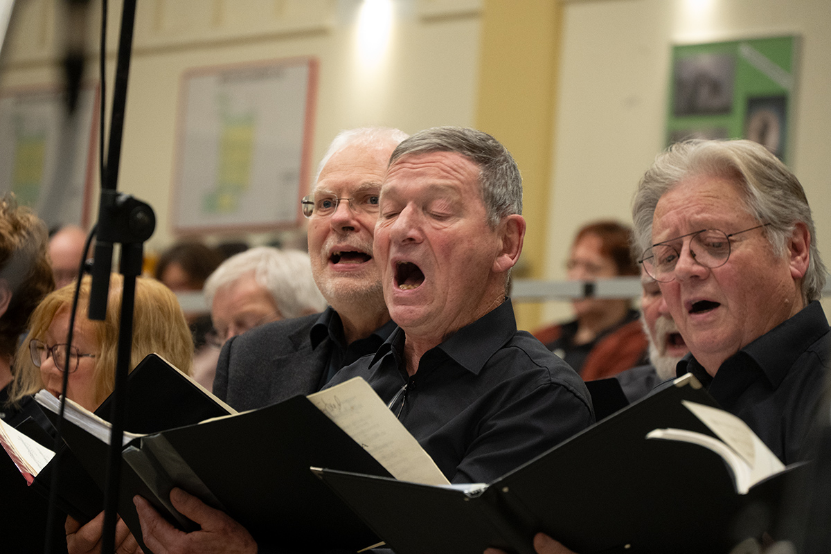 Im Ablauf tritt ein Kinderchor auf, was dem Knaben- und Mädchenchor der Bergischen Akademie für Vokalmusik nach langer Pause endlich wieder einen Auftritt verschaffte. Außer ihnen gehörten zum Gesangsensemble Mitglieder von „Chor ‘72 Dieringhausen“, „ensemble cantabile wiehl“, Vokalensemble „A CAPELLA“ aus Köln, „Mucher Konzertgemeinschaft“, Kirchenchor „Cäcilia“ aus Holpe und der Projektchor „CHORZEIT“ der Musikschule der Homburgischen Gemeinden.