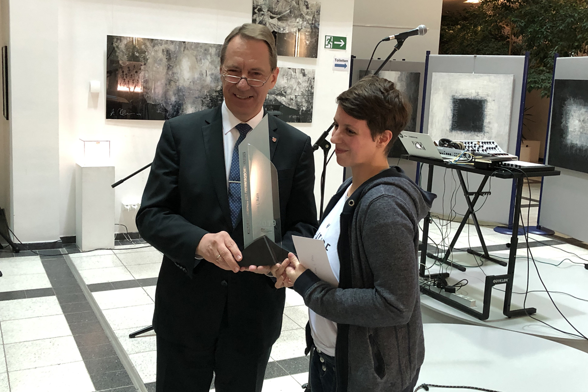 Oberberg - Landrat Jochen Hagt verlieh gestern Abend den Kultur-Förderpreis des Oberbergischen Kreises im Gummersbacher Kreishaus - Mit insgesamt 2.500 € wurden Manuele Klein, Kiane L'Azin und die Band "Tily" prämiert.
