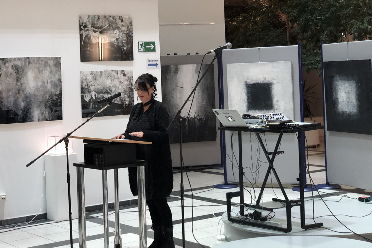"Wir möchten die Kulturszene im Oberbergischen fördern und diese in der Öffentlichkeit bekannt machen", so Hagt. Das Vergabegremium entschied sich in diesem Jahr für drei Preisträger. Den Hauptpreis erhielt die Künstlerin Manuele Klein aus Engelskirchen. Ihre Werke, die sich unter anderem mit Menschenrechten beschäftigen, wurden mit 1.000 € Preisgeld belohnt. "Oft geht es darum, genauer hinzusehen. Man bekommt einen neuen Blickpunkt, aber alles bleibt beim alten", appellierte Klein, während sie ihre Kunst vorstellte.