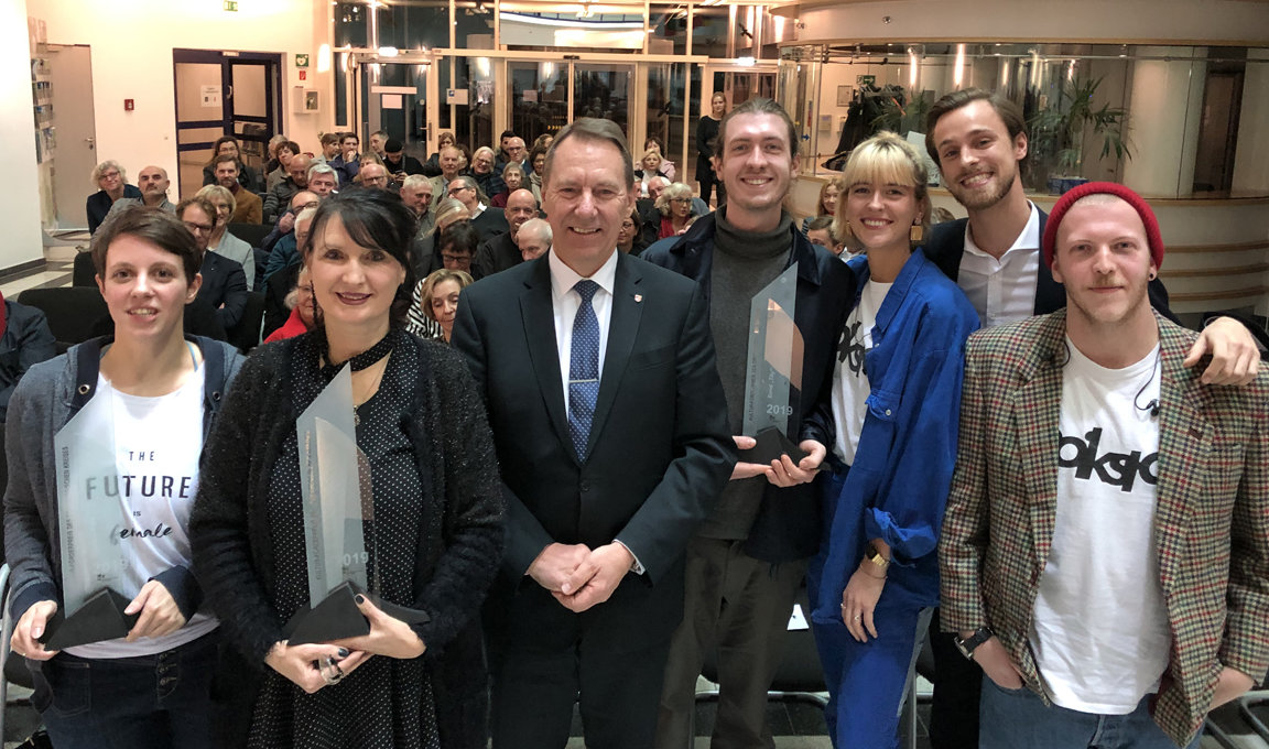 Mit je 750 € wurden die Autorin Kiane L'Azin aus Lindlar und die vierköpfige Band "Tily" aus Gummersbach um Tilman Henke, Karolin Gärtner, Leon Laguna und Leon Sieland belohnt. L'Azin las den Gästen eine Kurzgeschichte vor, bei der der Klimastreik thematisiert wurde. Der Frontsänger von "Tily", Tilman Henke, brachte die Gäste ein ums andere Mal mit seinen humorvollen Aussagen zum Lachen: "Das ist unser erster Preis seit den Bundesjugendspielen. Es ist schön, dass er aus unserer geliebten Heimat Gummersbach kommt". Das Quartett umrahmte den Abend mit ihren Songs "Rappelkopf", "Neue Welt" und "Einmal wieder Kind sein".