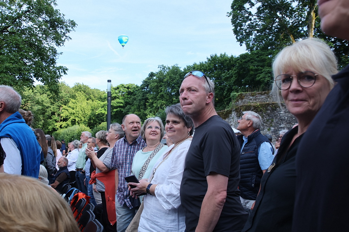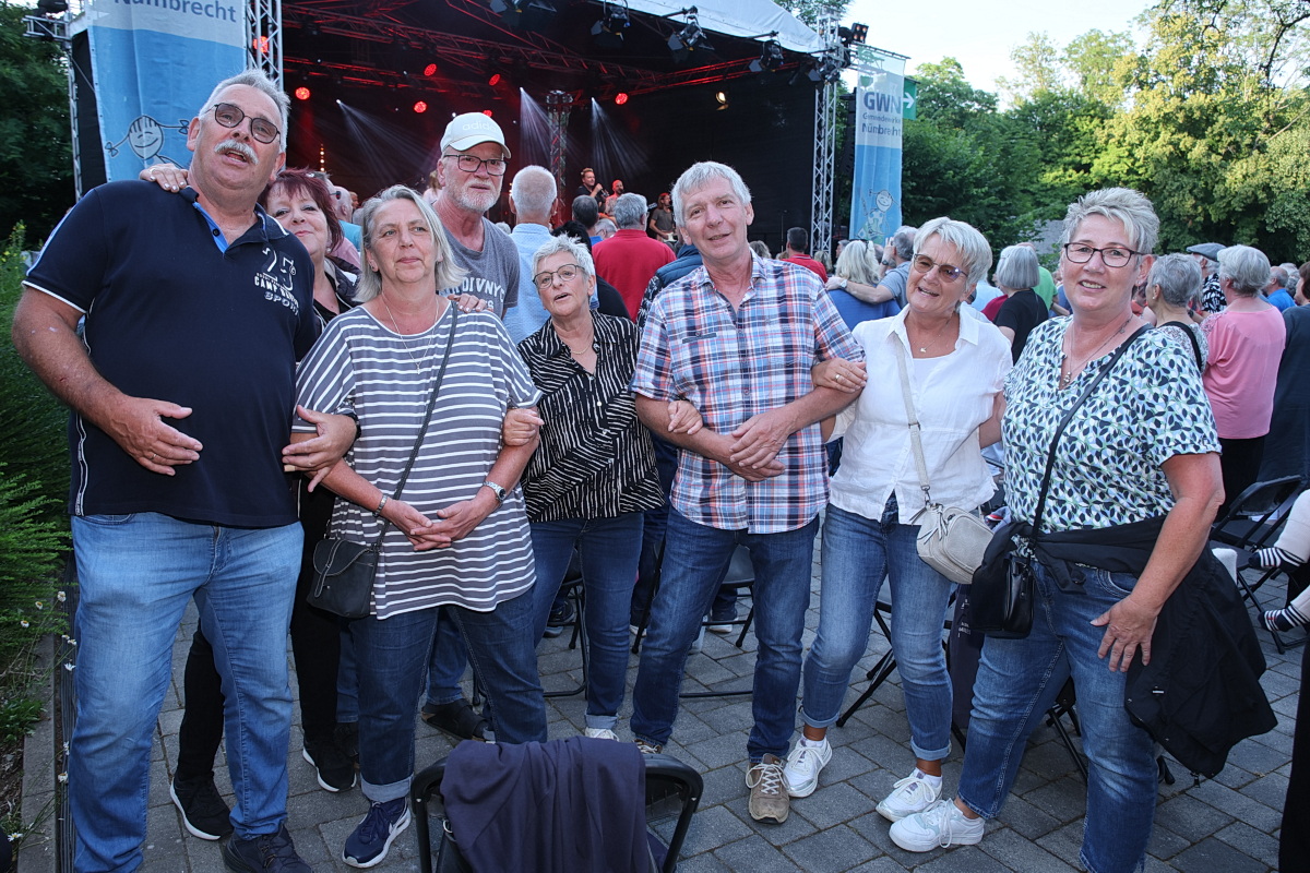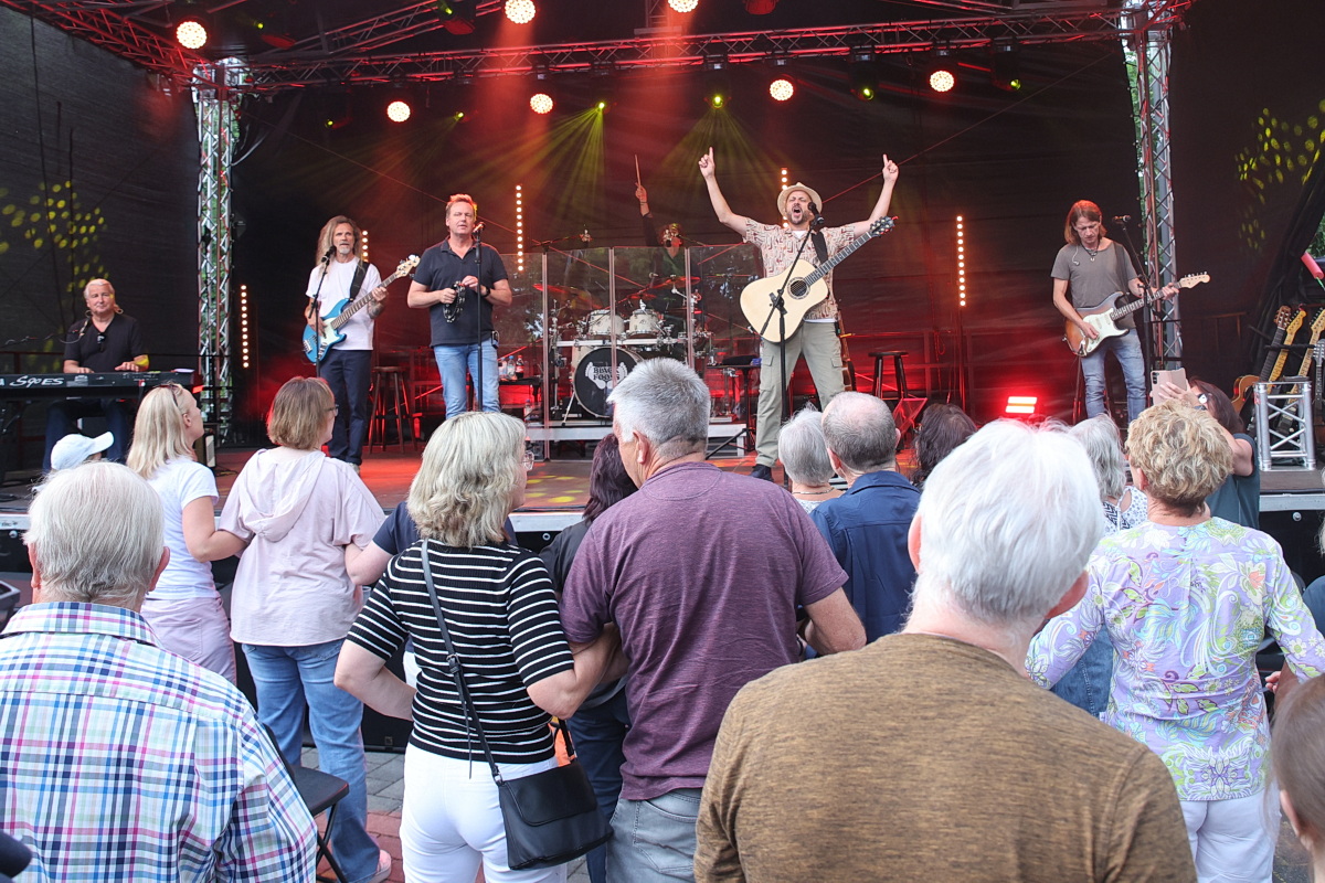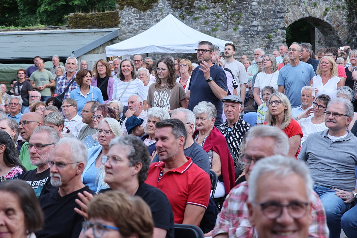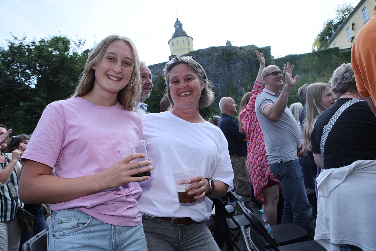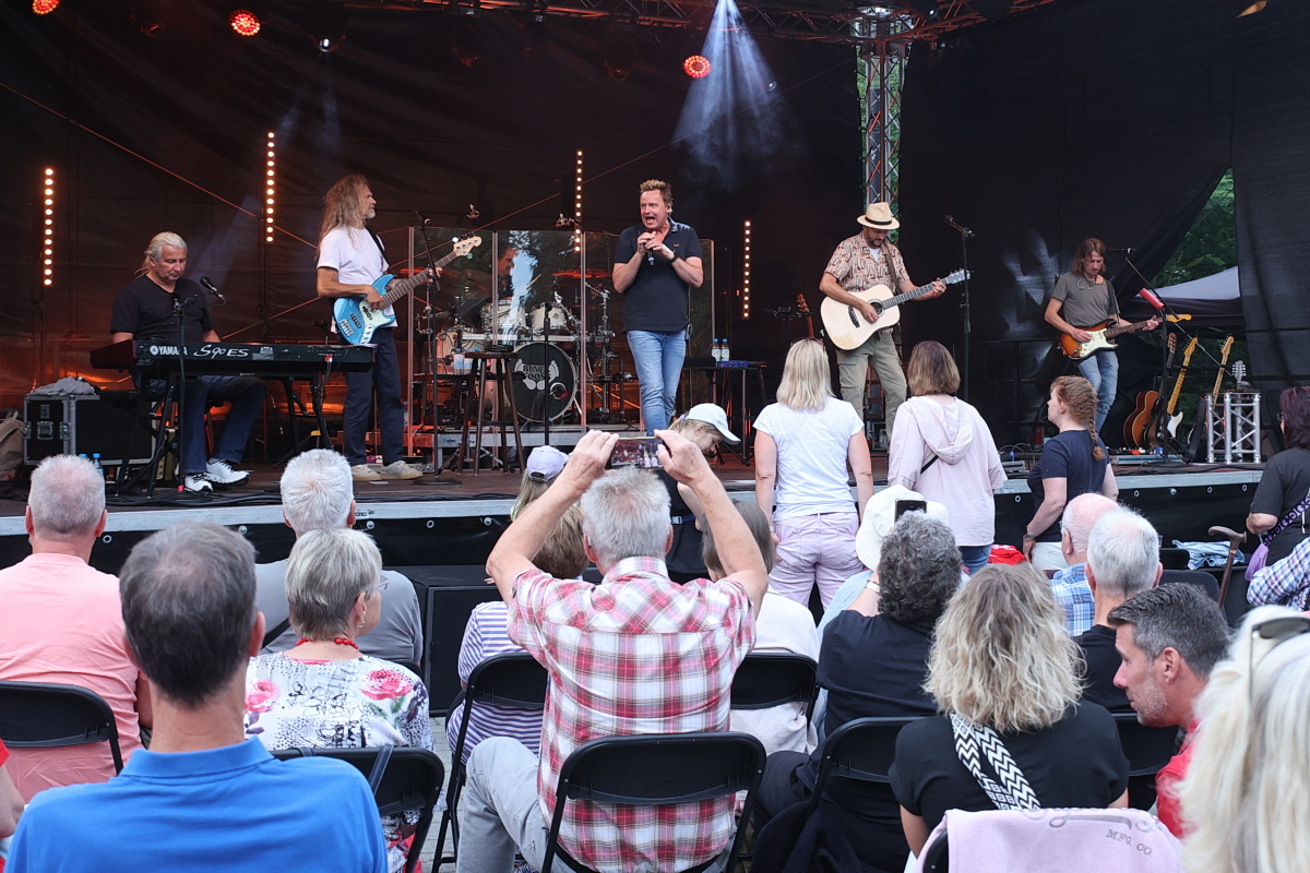 Kein Wunder also, dass das Open-Air mit den Bläck Fööss auf Schloss Homburg gestern rund 500 Fans in die „gute Stube“ des Oberbergischen Kreises lockte, wo sie den Auftritt der sechs Stars aus der Rheinmetropole zu einem glatten Heimspiel werden ließen. Dass Mirko Bäumer, Christoph Ganderath, Pit Hupperten, Hanz Thodam, Andreas Wegener und Alex Vesper nicht allein vom musikalischen Erbe und den Ideen ihrer Vorgänger leben, stellten sie zu Konzertbeginn mit „En d`r Altstadt weed en Bud frei“ von 2022 und „Alles hät sing Zick“ von 2024 unter Beweis, die vom gut aufgelegten Publikum direkt begeistert abgefeiert wurden.