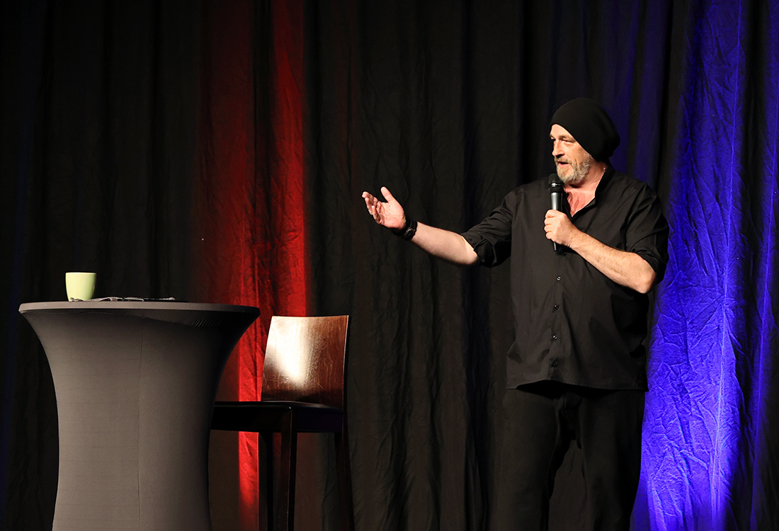 Nach rund eineinhalb Jahren Bühnenpause durch Corona und einem euphorischen Begrüßungsapplaus lagen sich das Publikum und der Mann mit der Mütze vom ersten Moment an bildlich in den Armen. "Schön, dass Sie da sind, ich hab nicht daran geglaubt.“ Ohne sich mit weiteren Präliminarien aufzuhalten ging Kult-Comedian Torsten Sträter gestern Abend in der SCHWALBE arena von Beginn an steil, klopfte Sprüche, drechselte Wortspiele, schraubte an Begriffen und nahm seine Zuhörer mit auf einen zweieinhalbstündigen Rundgang durch die schräge Welt der Idiotie.