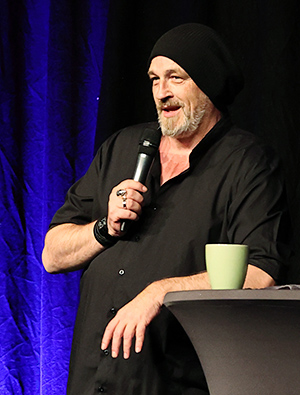 Der Begriff Götterspeise beispielsweise bewirke komplett falsche Vorstellungen, sei nichts anderes als eine vibrierende Masse steifen Glibbers aus gehobeltem Schwein, mit dem Geschmack grün. In detailreichen Bildern zeichnete der gebürtige Dortmunder die urkomische Kopfgeburt von Odin, der obersten Gottheit der nordischen Mythologie, der an seinem runden Eichentisch in Walhalla eine Runde Wackelpudding für alle bestellt. Weiter ging es mit Telefon-Storys vom Erben des Imperiums, der allerdings gerade 18 geworden sei und nicht mehr als Programmpunkt herhalten wolle. "Dem hab ich echt nix beigebracht, außer was er nicht essen soll". So wie die Bockwurst auf der Autobahnraststätte, die mindestens seit 1984 in der Brühe treibe.