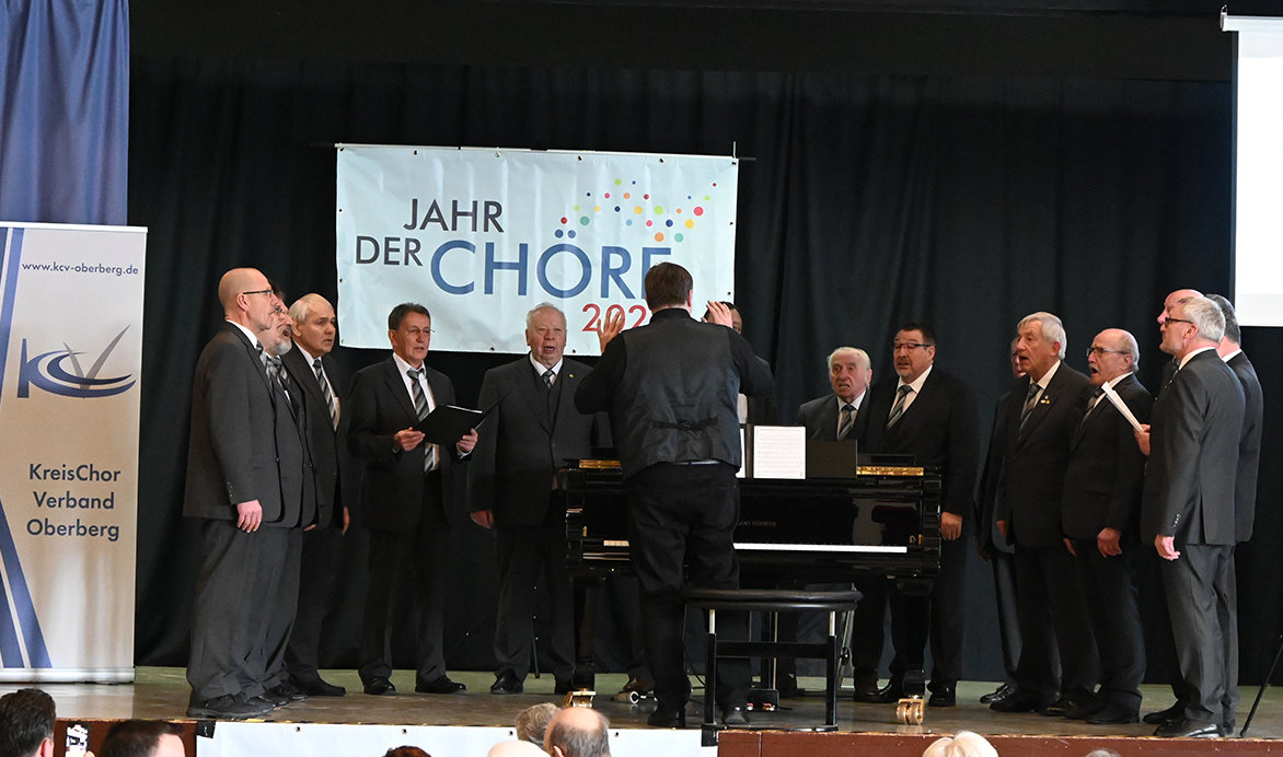 „Singen verbindet und singen fördert die gute Stimmung“, so Rausch. 24 Herren und 18 Damen wurden an diesem Tag geehrt. Von den zwölf zu ehrenden Jugendlichen war leider nur eine anwesend. Zudem konnten drei Ensembles auf ein besonderes Jubiläum blicken. Zum Auftakt präsentierte der MGV „Homburg“ Winterborn zwei Stücke:„Wunder dieser schönen Welt“ und „Ich wollte nie erwachsen sein“ von Peter Maffay und Rolf Zuckowski, bei dem Chorleiter Mario Ahlborn, das Solo sang.