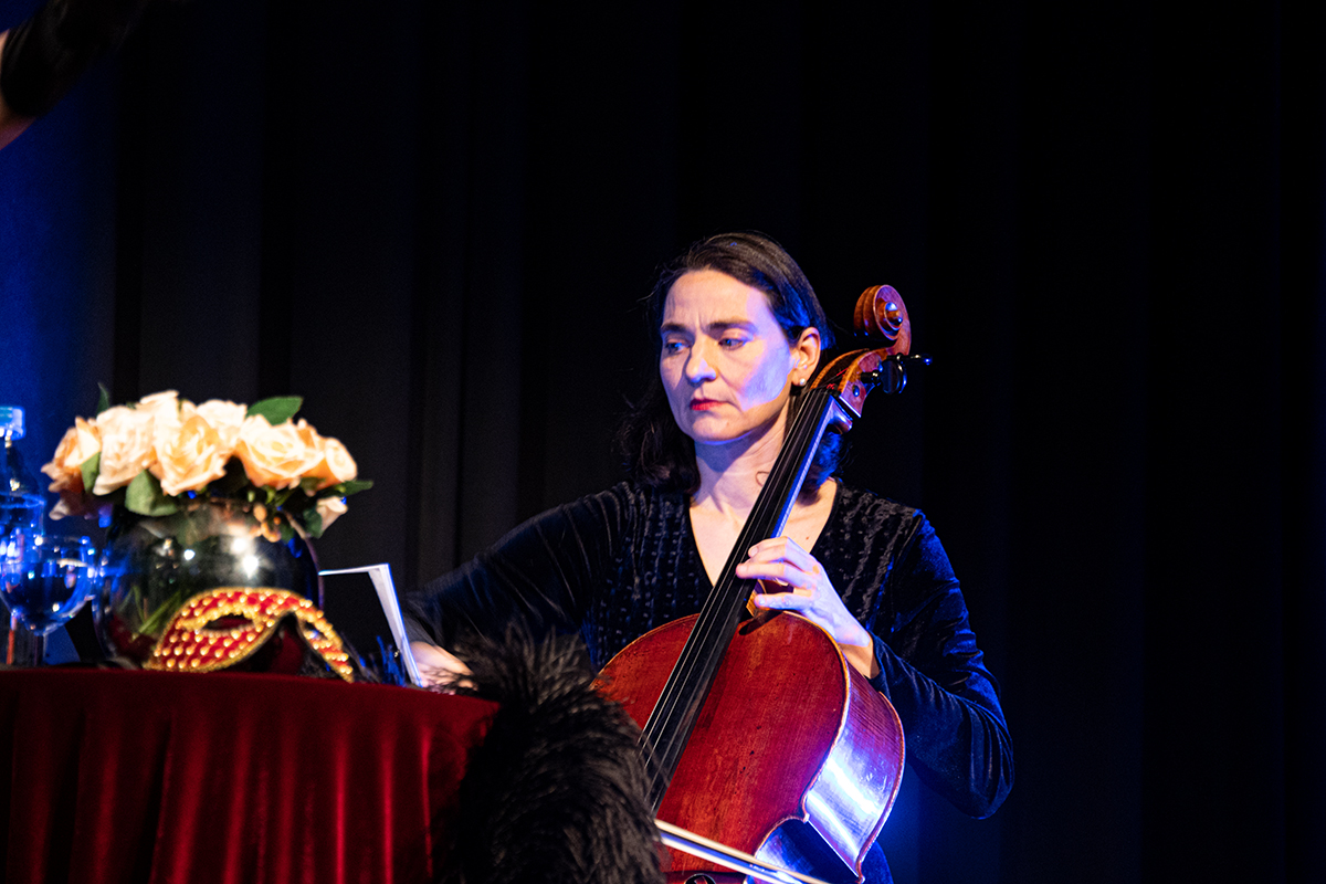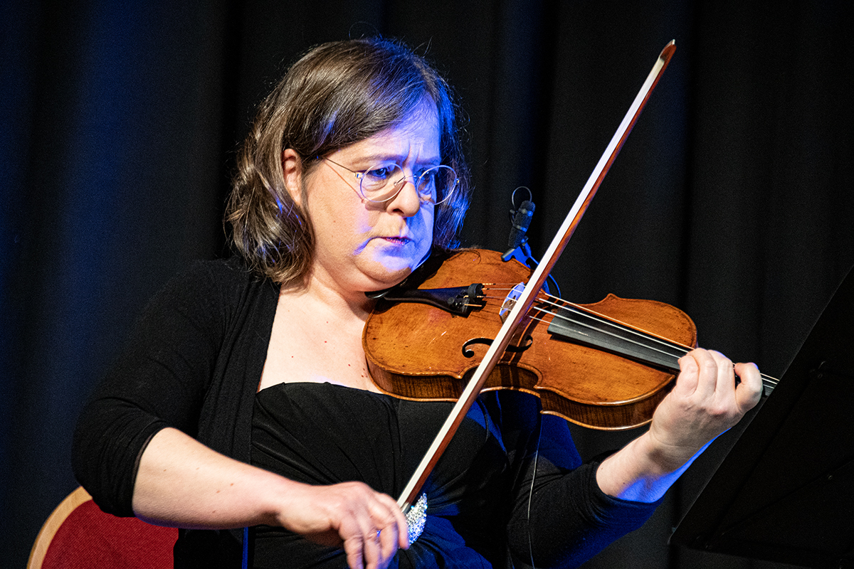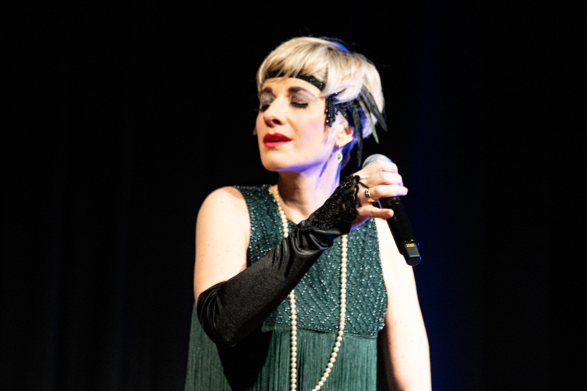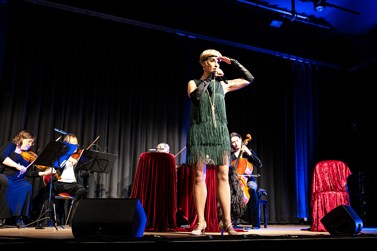 Vom grünen 1920er-Charleston-Kleid wechselte Haan nach der Pause zum noblen anthrazitfarbenen Abendkleid. Sehr gefühlvoll bot sie die teilweise melancholischen Lieder von Chava Albertstein, Sasha Argov und anderen auf Jiddisch, Hebräisch oder Deutsch dar. Begleitet von Benjamin Schaefer am Flügel und dem Diplomatischen Streichquartett mit Henriette Scheytt, Dr. Felix Klein, Ernst Herzog und Gabriella Strümpel. Beeindruckend auch „Lili Marleen“ in mehreren Sprachen – denn dieses Lied war die Hymne aller Soldaten, aller Länder, so die Sängerin.