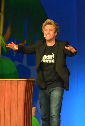 Der Ferienflieger nach „Grammel Island“ ist gestern Abend mit reichlich Verspätung abgeflogen, denn coronabedingt musste der eigentlich bereits im vergangenen Februar geplante Start um fast ein Jahr verschoben werden. Die Landung zum Gag-Feuerwerk mit Sascha Grammel und seinen Puppenfreunden erfolgt dann aber pünktlich. Für die ersten Lacher auf der „Insel“(Bühne) in der Gummersbacher SCHWALBE arena sorgt der wortkarge Berg „Wolfgang“, der als überdimensionale Puppe und Teil der Hintergrundkulisse einzig den Satz „in Gummersbach“ über seine (ferngesteuerten) Lippen bringt. Eingerahmt in Grammels Begrüßungsworte mündet der Auftakt in einer La-Ola-Welle des Publikums.