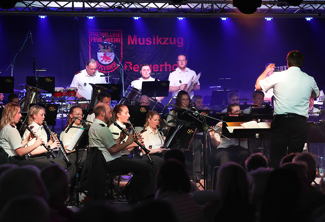 Frank Hochhard begrüßte die Zuschauer als Vorsitzender des Musikzugs – darunter befreundete und benachbarte Vereine aus dem Oberbergischen und dem Sauerland sowie Vertreter der Feuerwehr und aus Rat und Verwaltung sowie Bürgermeister Rüdiger Gennies. In seiner Begrüßung warf Hochhard einen Blick auf die 125-jährige Vereinsgeschichte. Außerdem sprach er über die Bedeutung des kulturellen Auftrags und das soziale Engagement jedes einzelnen und wie das – auch in diesen Zeiten – zu mehr Harmonie und Freude führe. „Musik verbindet“, sagte der Vorsitzende.