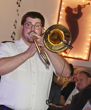 Nach dem Grußwort von Bürgermeister Rüdiger Gennies übernahm der Musikalische Leiter und Dirigent Tobias Sünder wieder den Taktstock. Mystisch ging es weiter mit dem „Phantom der Oper“ von Andrew Lloyd Webber, worauf „Aida“ von Guiseppe Verdi folgte. Hier überzeugten die Trompeter Bennedikt Schür, Janneck Becker und Tim Hardenbicker mit ihren Schlauchtrompeten. Anschließend präsentierte das mit über 40 Musikern besetzte Orchester die Filmmusik von „Das Boot“, dem wohl bekanntesten deutschen Filmwerk.