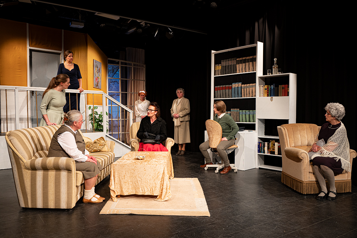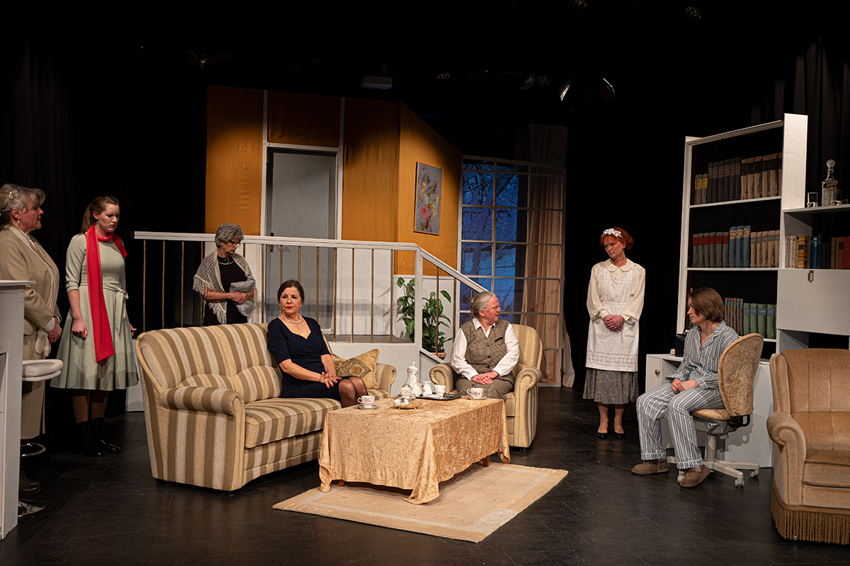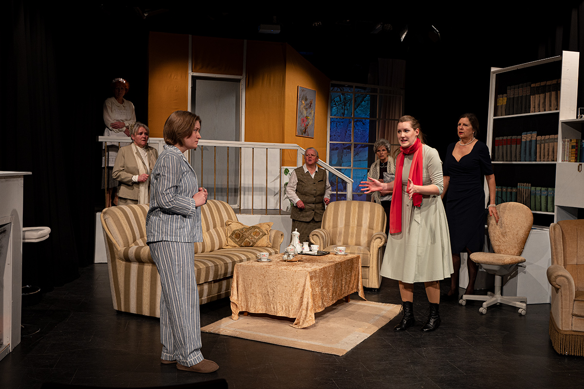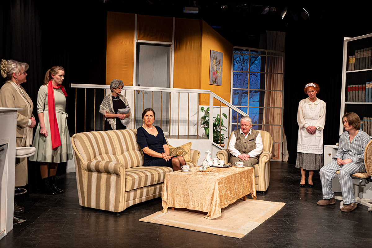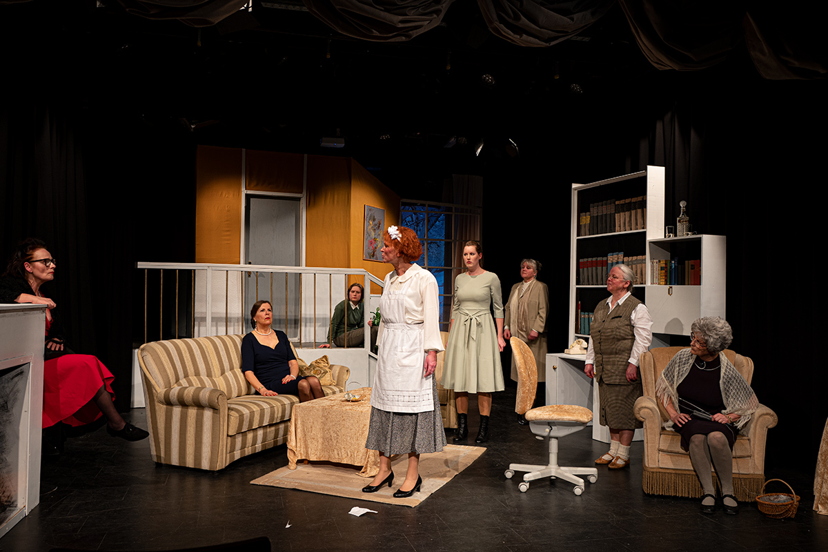 „8 Frauen“ – im Original „Huit femmes“ – von Robert Thomas (1927-1989) wurde 1961 uraufgeführt. Beim Theaterstück in Wiehl zeigt das Bühnenbild einen Salon mit prasselndem Kamin und einer Treppe zum Zimmer des Hausherrn. Mit Windgeräuschen, Musik und entsprechendem Licht sorgte Pirmin Ader für die passende Technik zum Stück. Es ist vor den Osterferien am 29. und 31. März um 20 Uhr zu sehen. Ab dem 21. April folgen sieben weitere Aufführungen.