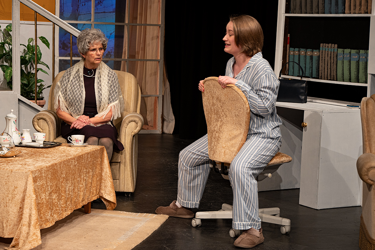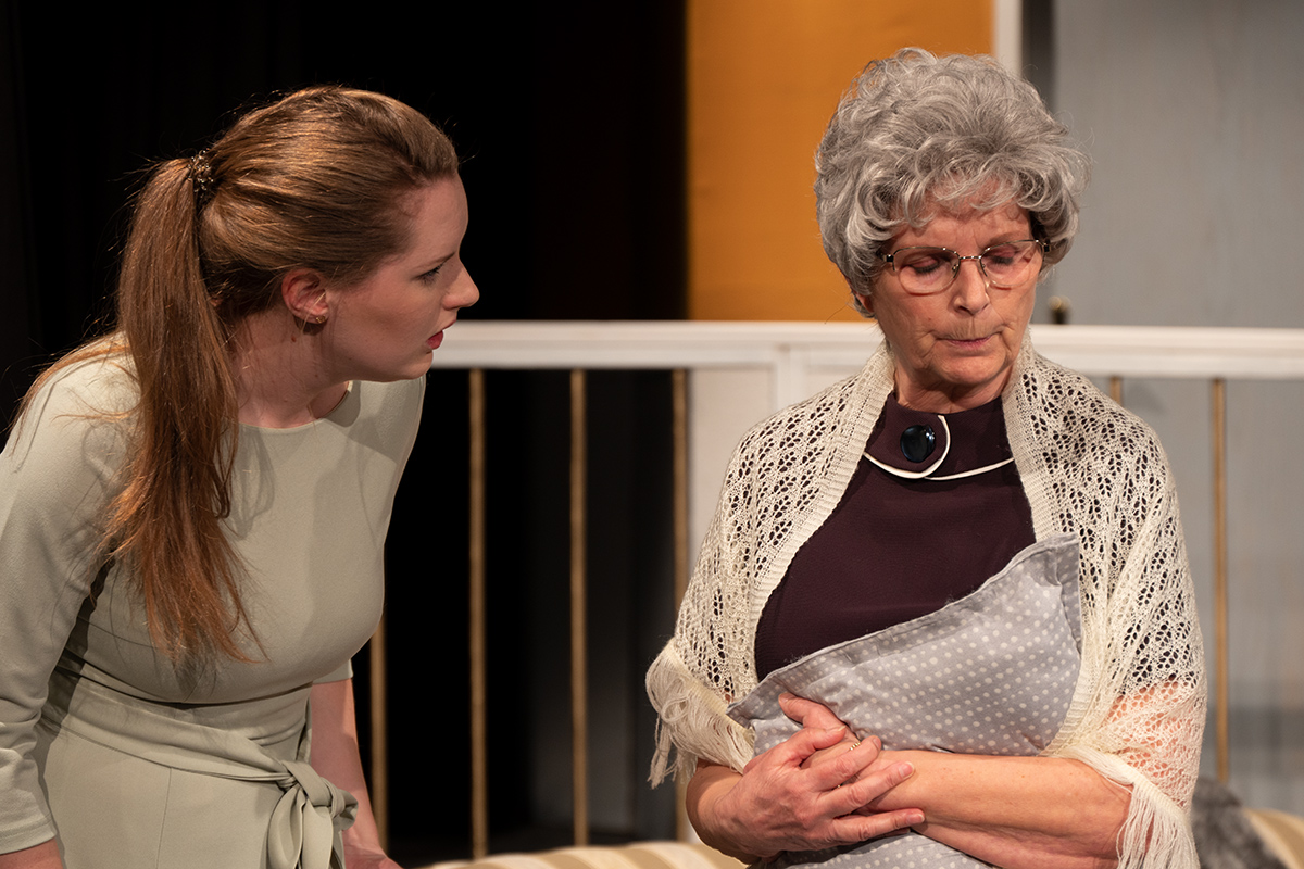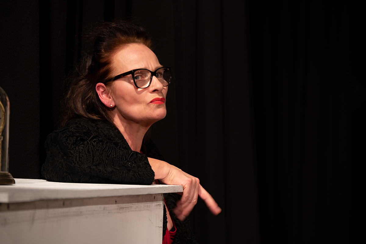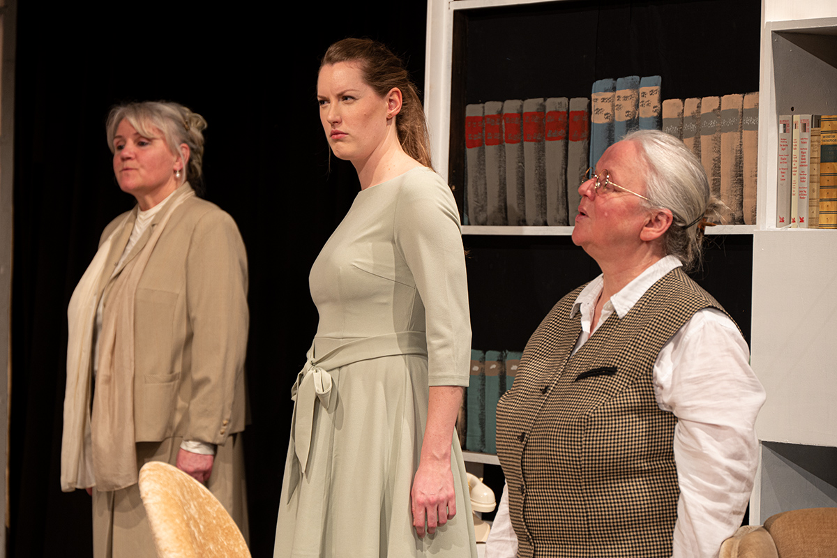 Almut Irmscher ist Gaby, die Herrin des Hauses: groß, elegant und von jener kühlen Beherrschtheit, der man jede Intrige zutraut. Sie behält statthaft die Contenance. Ihr Mann hat ihre Mamy und ihre Schwester Augustine aufgenommen - die beiden sind hin und hergerissen zwischen Dankbarkeit und ihrem Geiz. Jungfer Augustine legt zudem eine bewusst verletzende, zickige und rücksichtlose Art an den Tag – grandios von Bärbel Stinner dargestellt. Wunderbar ist Gaby Bülter in der Rolle der Mamy, die stets bemüht ist, zwischen ihren immerzu streitenden Töchtern zu vermitteln. Doch hinter ihrer großmütterlichen Fassade verbirgt sich eine scheinheilige Frau, die die Gastfreundlichkeit ihres Schwiegersohns schamlos ausnutzt und heimlich zur Flasche greift.