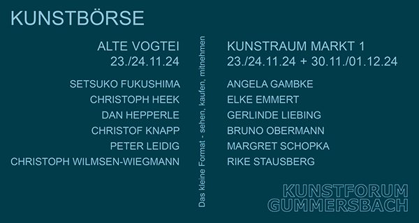 Die Kunstbörse kann am Samstag, 23. November, und Sonntag, 24. November, in der Alten Vogtei und im „Kunstraum Markt 1“ sowie am Samstag, 30. November, und Sonntag, 1. Dezember, ausschließlich im „Kunstraum Markt 1“ besucht werden. Die Räumlichkeiten sind jeweils von 11 bis 17 Uhr geöffnet. Der Eintritt ist frei. Dan Hepperle, der im Bereich Grafik und Malerei tätig ist und bei der Kunstbörse ausstellen wird, wird zudem am Sonntag, 24. November, Stücke auf seiner Shakuhachi-Flöte spielen. Am Sonntag, 1. Dezember, wird Harry Meschke mit einem Hang und einer Handpan für eine musikalische Rahmung sorgen.