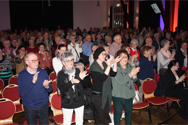 Leidenschaftlich vorgetragene Medleys von ABBA, einer der erfolgreichsten Bands der Musikgeschichte und des Bandleaders James Last, der ab Mitte der 1960er-Jahre den zur Stilrichtung des Easy Listening gehörenden „Happy Sound“ kreierte, verhalfen einer Vielzahl verklungenen Welthits zu emotional beklatschten Revivals. Monumentalen Ohrenschmaus präsentierte der hymnische John Miles Titel „Music“, bei dem das Instrumentalisten-Ensemble quasi alle Register zog, die Hörerschaft mit maximal abgerundeten Klangvolumen und ausgefeilten Soli zu stehenden Ovationen herausforderte. Als Sahnehaube servierten die Musiker einen mit Spielfreude und Hingabe intonierten Radetzky Marsch, zu dem sich eine putzmuntere Polonaise auf den Weg durch die Stuhlreihen machte. „Ich verneige mich vor eurer Leistung“, bedankte sich Heinz Rehring am Ende eines fulminanten Liederabends, bei dem er selbst nach 18 Jahren an der Spitze des Musikzuges letztmalig die Regie führte.