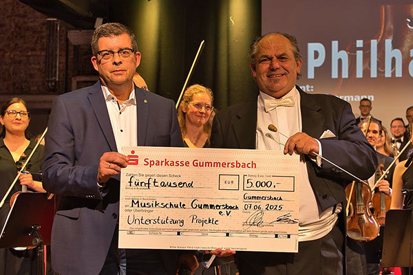 Mit Mozarts Overtüre aus „Die Entführung aus dem Serail“ starteten die Philharmoniker in den Abend. Danach sprach Gummersbachs Bürgermeister Frank Helmenstein ein paar Worte. „Ich unterstütze das Orchester seit 21 Jahren als Schirmherr. Danke, dass sie diese Konzerte ermöglichen“, sagte er. Mitgebracht hatte er einen Scheck in Höhe von 5.000 Euro, den er Karsten Dobermann überreichte. Dem Leiter der Musikschule Markus Missbrandt bedeutet das Jubiläum viel. „Ich habe großen Respekt vor Karsten Dobermann und seiner unermüdlichen Arbeit des Orchesters, sich auch über den regulären Unterricht und die Proben hinaus für die Sache stark zu machen."