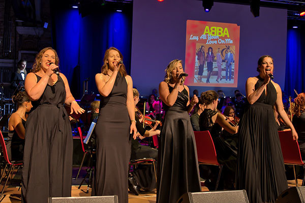 [Sängerinnen begleiten die Gummersbacher Philharmoniker bei den Jubiläumskonzerten.]