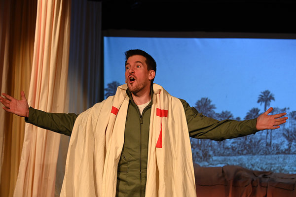 [Brillant spielt Colin Knura die Zerrissenheit des Tempelherrn. Sein Kostüm – khakifarbener Soldaten-Overall und der Umhang des Kreuzritters - verbinden Mittelalter mit der Jetztzeit und verdeutlichen die Aktualität des Stückes.]