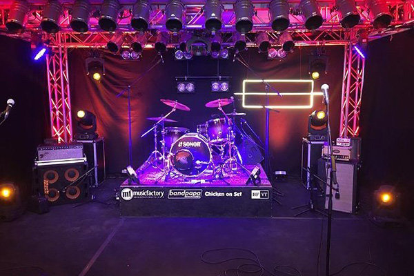 [Foto: WareHouseStage --- Klein, aber trotzdem laut: Die Bühne der WareHouseStage.]