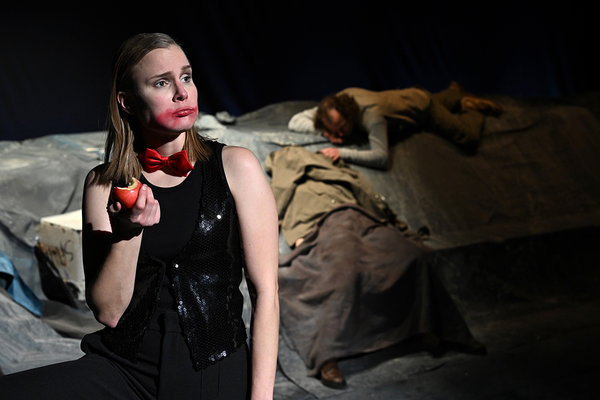[Brillant in der Rolle der „Marktschreierin“: Thyra Uhde – hinten Woyzeck-Freund Andres (Mario Thomanek).]