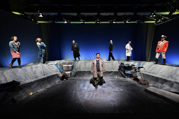 Eine Art Bombenkrater, Schützengraben und auch Müllhalde mitten auf der Bühne in der Halle 32. Woyzeck (Mike Kühne, dem man den Geschundenen und Verzweifelten sofort abnimmt) sammelt Plastikflaschen. Er wirkt verwirrt und gehetzt. Stille, als wäre die Welt tot – und dann erklingt eine Marschkapelle. Woyzeck verfällt mehr und mehr in düsteren Visionen. Das grausige Ende: „Ein guter Mord, ein echter Mord, ein schöner Mord, so schön, als man ihn nur verlangen kann“.