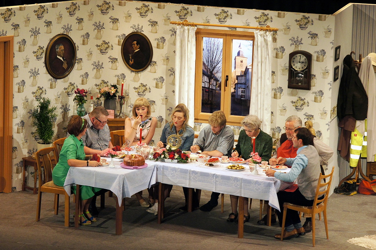 Das Chaos beginnt, während Margot und Heinz, dargestellt von Marianna Moscato-Klinkhammer und Alexander Köser, mit dem Wohnmobil verreisen und ihren lang gehegten Traum verwirklichen. Zum Schluss des fast zweieinhalbstündigen Lustspiels in drei Akten, wer hätte es auch anders vermutet, löst sich alles in Wohlgefallen auf und alle Konflikte, Streitereien und Eifersüchteleien sind behoben.
