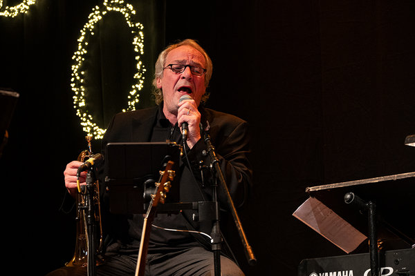 Mit Flügelhorn und dem Stück „What child is this“ eröffnete Helmut Jost das Konzert. Er sang, spielte Keyboard sowie Flügelhorn und erzählte die Geschichte des Raben Jakob, der bei der „Jerusalem Post“ als Reporter arbeitet. Die Geschichte spielt in Jerusalem zurzeit von Jesu Geburt und Reporter Jakob fliegt einfach mal nach Bethlehem zur Volkszählung. So zog sich durch das Konzert zwischen den Stücken die Weihnachtsgeschichte aus der Sicht des Raben.