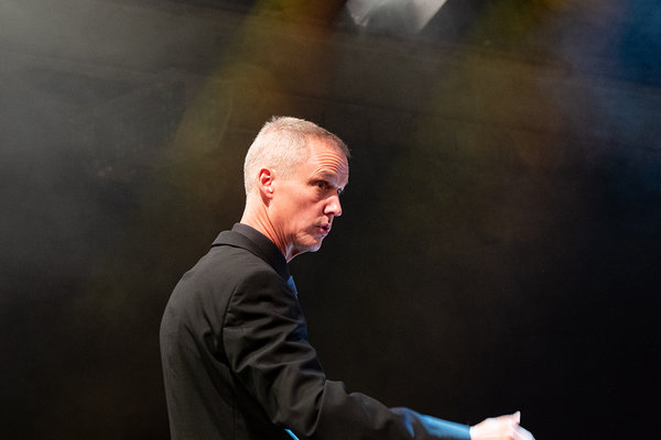 Rund 50 Bläserphilharmoniker unter der Leitung von Ingo Samp und drei Rockmusiker der Band „Superthousand“ – Sänger und Gitarrist Dominik Mertens, Bassist und Keyboarder Lars Dreier sowie Drummer Markus Missbrandt – sorgten für einen facettenreichen Abend mit Musik, die mitnahm in unterschiedlichsten Sphären. „Wir gucken gerne in die Sterne und machen uns viele Gedanken“, so Mertens. Das kam nicht nur in dem Stück „Stellar Dust“ zum Ausdruck. Zu „Word on Wire“, in dem es um unser Parallelleben im Internet geht, kommentierte er „Wir stellen unser Leben fast komplett ins Internet – es ist doch viel schöner, wenn wir hier ganz ohne Social Media zusammen sind“.