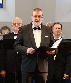 Der zweite Teil begann mit dem Lied „Jerusalem“ von Stephen Adams, die Strophen solistisch hervorragend gesungen von „Räuber“ Hans-Josef Klee, der Chor in stimmgewaltiger Begleitung bei den Refrains. Ján Rusko entführte die Zuhörer in seine Heimat mit sehr emotional vorgetragenen slowakischen Räuberliedern, wiederum selbst begleitet auf der Gitarre. Beide Solisten erhielten für die vorgetragene italienische Ballade „Ti voglio tanto bene“ von Ernesto de Curtis die ersten stehenden Ovationen des Konzerts.