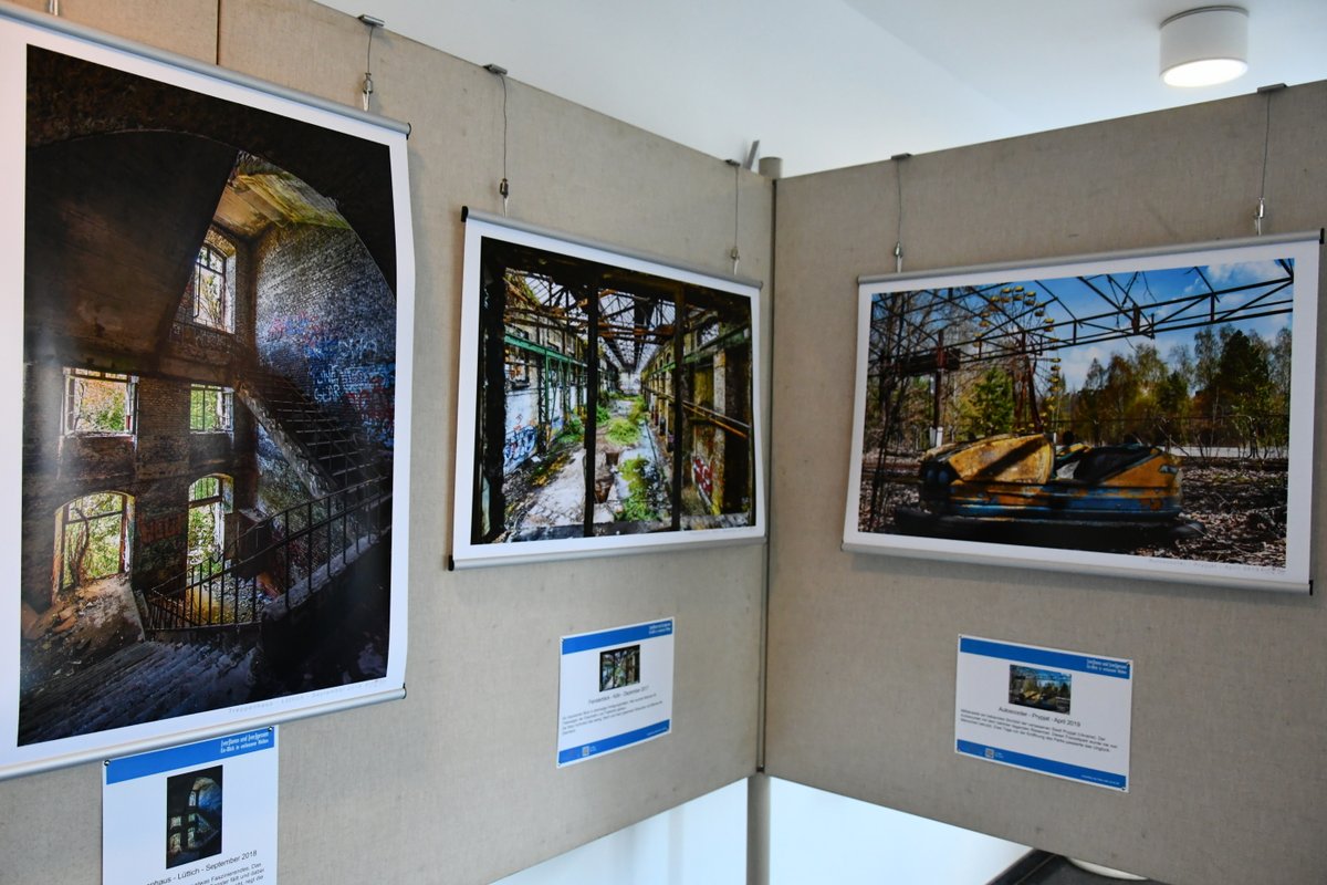 Die ausgestellten Fotos reichen von alten Firmengebäuden in der hiesigen Nachbarkommune, über Sanatorien und alte Militärgelände im nahen Ausland bis zum persönlichen Highlight Müllers, festgehaltene Eindrücke aus dem Bereich um das Atomkraftwerk Tschernobyl in der heutigen Ukraine, welches er im vergangenen Frühjahr mit seiner Lebensgefährtin besuchte. Zumeist mit Gleichgesinnten werden vorab entsprechende Objekte ermittelt und ausgewählt, was angesichts eines gewissen „Ehrenkodex“ unter den „Urban Explorern“ genannten Erkundern verlassener Orte nicht immer einfach ist. Die genaue Lage wird selten öffentlich preisgegeben.