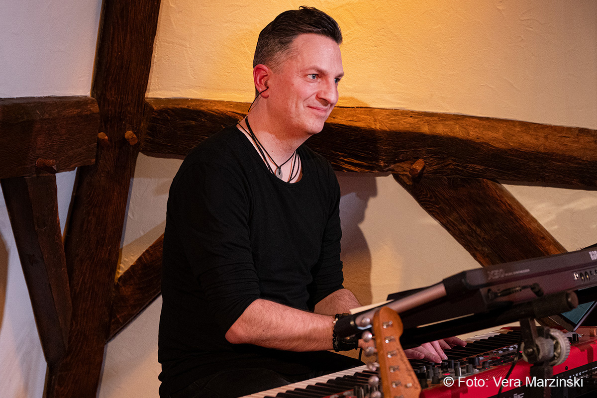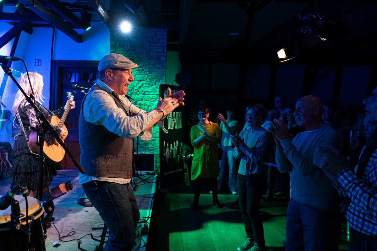Mit der Sängerin Barbara Wiebe, die auch die Akustikgitarre ausgezeichnet bedient, und dem grandiosen E-Gitarristen und Sänger Gerhard Wiebe - der auch mal quer durchs Publikum mit seiner Gitarre ging, obwohl es proppenvoll im Saal war - standen Sänger und Percussionist Andreas Keppler, Christopher Hinz am Keyboards, Bassist Armin Schöneberger und am Schlagzeug Michael Ernst auf der Bühne. Fast 30 Songs von Fleetwood Mac aus mehreren Jahrzehnten spielte „The Chain“.