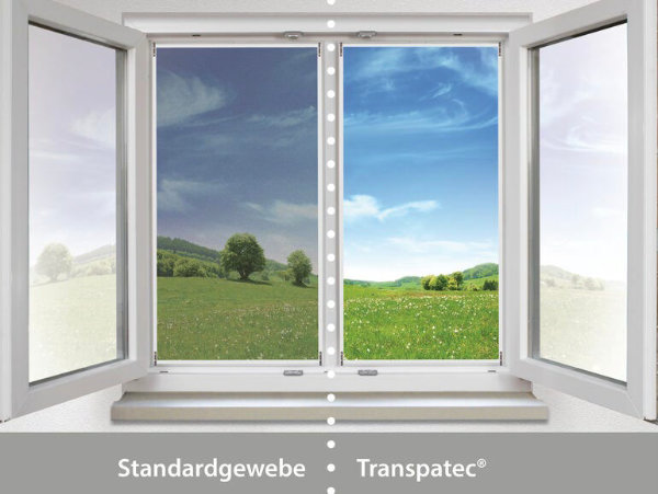 Genau hier kommt das Transpatec®-Gewebe ins Spiel: Dank superfeinem Hightech-Faden bietet es bis zu 140 % mehr Luftdurchlass als herkömmliche Gewebe – und ist dabei nahezu unsichtbar. Das bedeutet: brillante Durchsicht, optimale Frischluftzufuhr und zuverlässiger Schutz. Zudem ist das Material reißfest, witterungsbeständig und sogar selbstreinigend – ideal für dauerhaft entspannte Sommermonate.