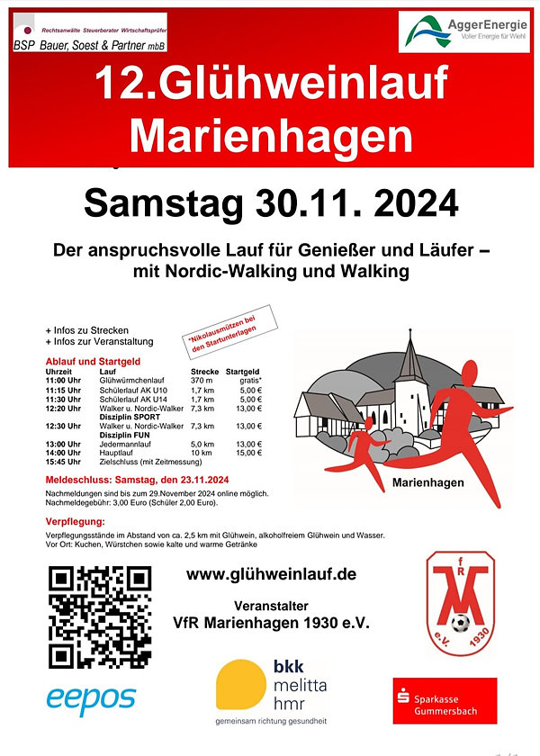 Wiehl – Probelauf für den diesjährigen Glühweinlauf in Marienhagen findet am 1. November statt - Interessierte sind herzlich willkommen.