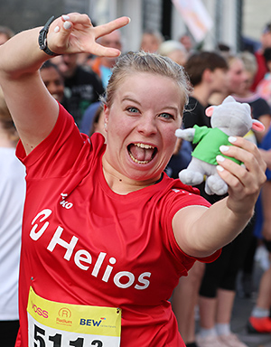 [Glücksbringer als Staffelstab -Adrenalin pur bei Janine Schulze von der Wipperfürther Helios Klinik bei ihrem Staffellauf.]