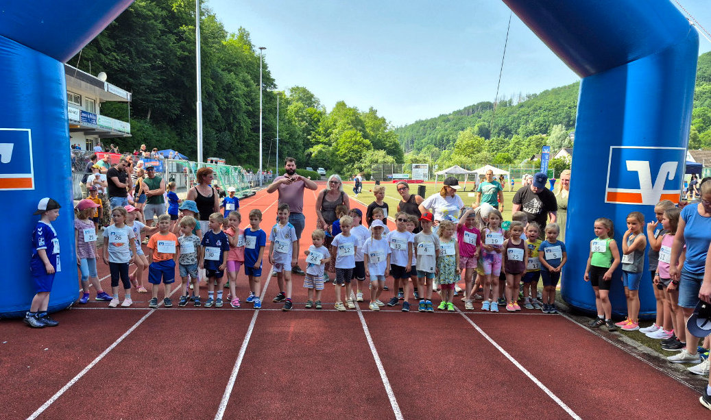 Zum vierten Mal veranstaltete der TSV Dieringhausen den „Volksbank Oberberg Kids run and fun“ im Stadion Hammerhaus - bei hochsommerlichen 30 Grad. „Wir hatten wieder ein schönes Familienfest mit toller Atmosphäre. Mit rund 200 Grundschul-Kindern bei den Stadionläufen und 13 Staffeln über 3x400 Meter für die älteren Kinder aus den Klasse 5 bis 8 gab es einen Teilnehmerrekord“, berichtete Uli Lorenzen vom Orga-Team. Los ging es wieder mit dem Bambini-Lauf, bei denen 30 Kindergarten-Kinder alles gaben. Die Regenbogenschule Dieringhausen erhielt wieder den Wanderpokal für die teilnehmerstärkste Schule und war auch bei den „besten Klassen“ erfolgreich.