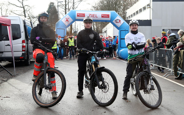 [Die Jungs von Trailrider Oberberg und Freerider Bickenbach waren kurzfristig eingesprungen, um mit ihren Mountainbikes an der Spitze des Feldes zu fahren.]