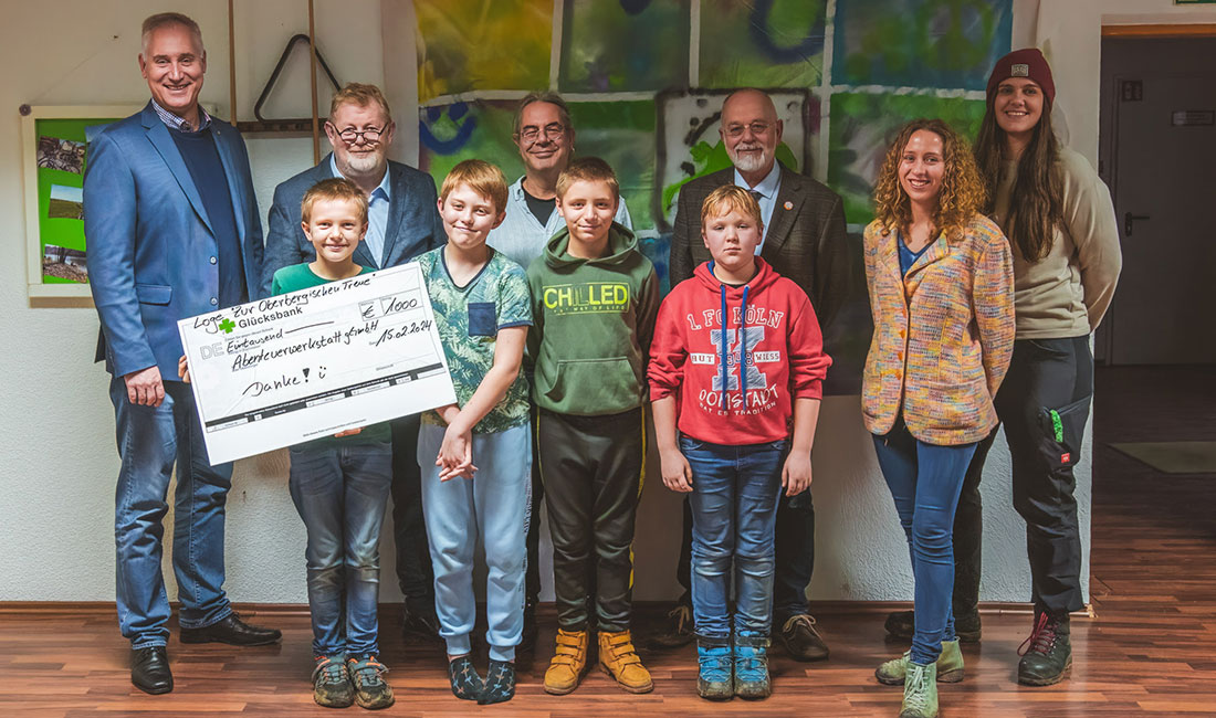 Die Abenteuerwerkstatt in Lindlar freut sich über eine Spende über 1.000 Euro von der Freimaurerloge „Zur Oberbergischen Treue“ aus Gummersbach. Die Übergabe der Spende an die Kinder und Mitarbeiter durch den "Meister vom Stuhl" Werner Bubenzer und Mitgliedern des Beamtenrates der Loge hat kürzlich im Jugend- und Familienzentrum der Abenteuerwerkstatt stattgefunden. Die Spende ermöglicht laut Mitteilung die Anschaffung eines großen Trampolins, welches die Förderung von Fein- und Grobmotorik und der Bewegungsfreudigkeit ganz allgemein unterstützt. „Darüber hinaus profitieren insbesondere Kinder mit Aufmerksamkeitsschwierigkeiten von dem beruhigenden, sanften Schwingen des Tuches.“ Außerdem soll weiteres Spielmaterial angeschafft werden.
