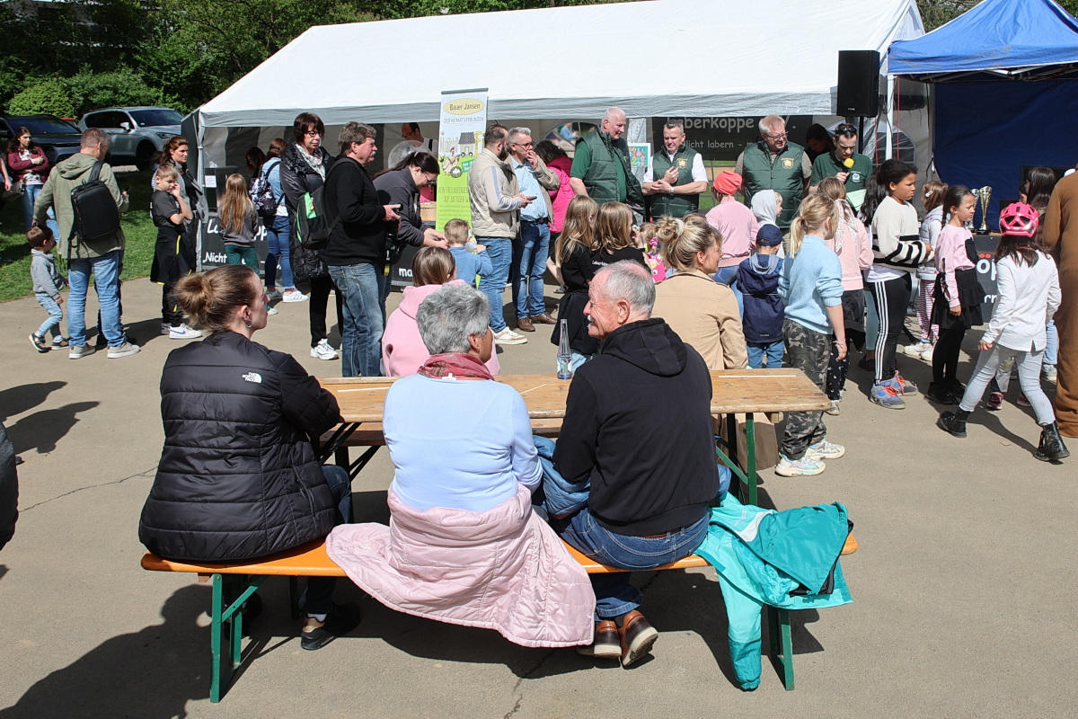 Mehr als 5.000 bunte Ostereier waren in den Ecken des Geländes versteckt worden. Besonders begehrt waren die 20 goldenen „GlücksStein-Eier“, die beim Osterhasen gegen hochwertige Preise eingetauscht werden konnten.„Wir haben heute in der Spitze 2.500 Menschen hier gehabt“, so der Vorsitzende der „Laberköppe“, Kai Martin Antweiler. „So viele glückliche Kinderaugen haben ich selten gesehen.“