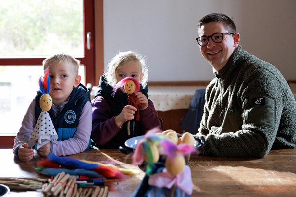 [Kinder basteln einen Kartoffelkönig und eine Kartoffelkönigin.]
