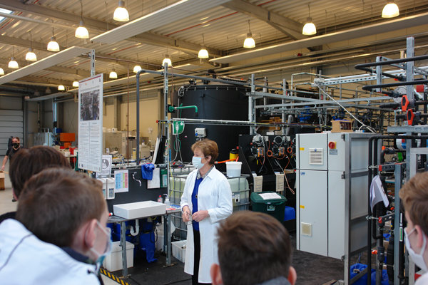Zehn Schüler der Realschule Steinberg aus Gummersbach beschäftigten sich im Rahmen der "Deutschen Aktionstage" Nachhaltigkeit mit den Themenbereichen Kunststoff und Mikroplastik. Zu Beginn lieferte Professor Astrid Rehorek bei einer Besichtigung der Forschungshallen der TH Köln Einblicke in die aktuelle Forschung und sieht dabei einige Vorteile: „Auf diesem Weg kommen wir in direkten Kontakt mit den Schülern und haben die Möglichkeit, uns besser auf unsere potentiell zukünftigen Studenten einstellen zu können. Zudem bietet eine solche Aktion uns die Chance, Forschungsergebnisse in die Öffentlichkeit zu tragen und – auch mit der Hilfe des Lernortteams – in einer zielgruppengerechten Vermittlung nachvollziehbar zu machen.“
