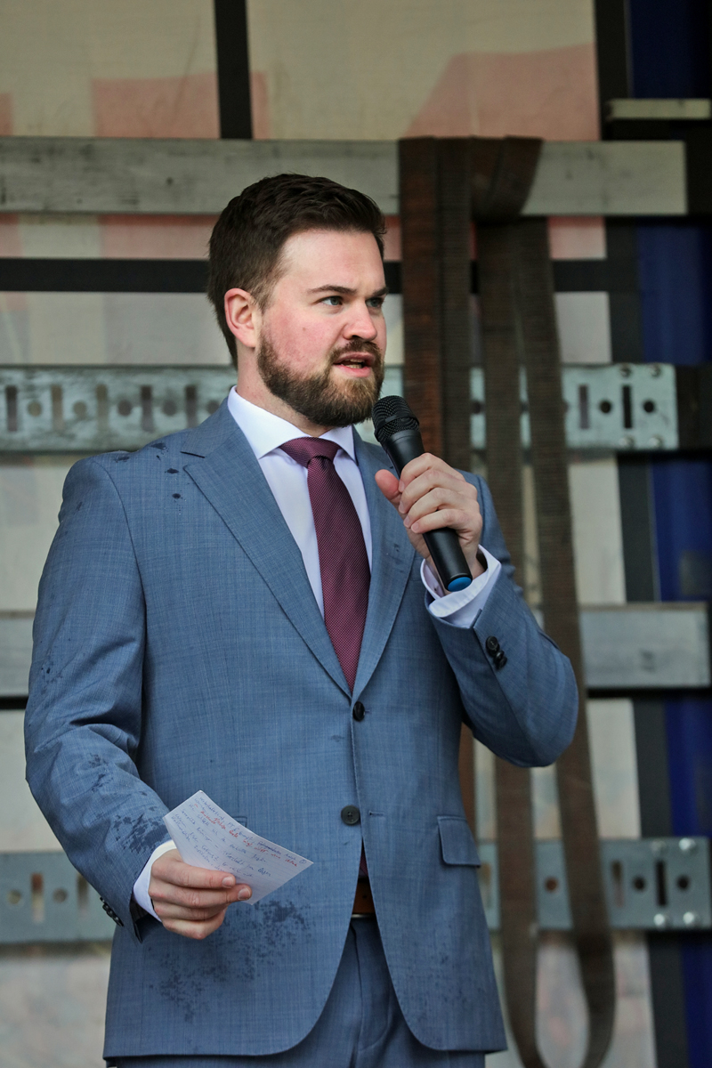 Als zweiter Sprecher betonte Pascal Rheinhardt, Bundestagskandidat der SPD, dass Demokratie nicht wie ein magisches Wesen von oben käme, sie müsse vielmehr gelebt und verteidigt werden. „Wir sparen uns unsere Zukunft kaputt“, so Rheinhardt. Dass in Deutschland zu wenig in die Infrastruktur investiert werde, zeige sich unter anderem bei Straßen, Schulen und den erneuerbaren Energien. Die sogenannte Schuldenbremse der Bundesregierung mache viele Bürger unzufrieden, und das bringe sie dazu, Rechtsradikale zu wählen.