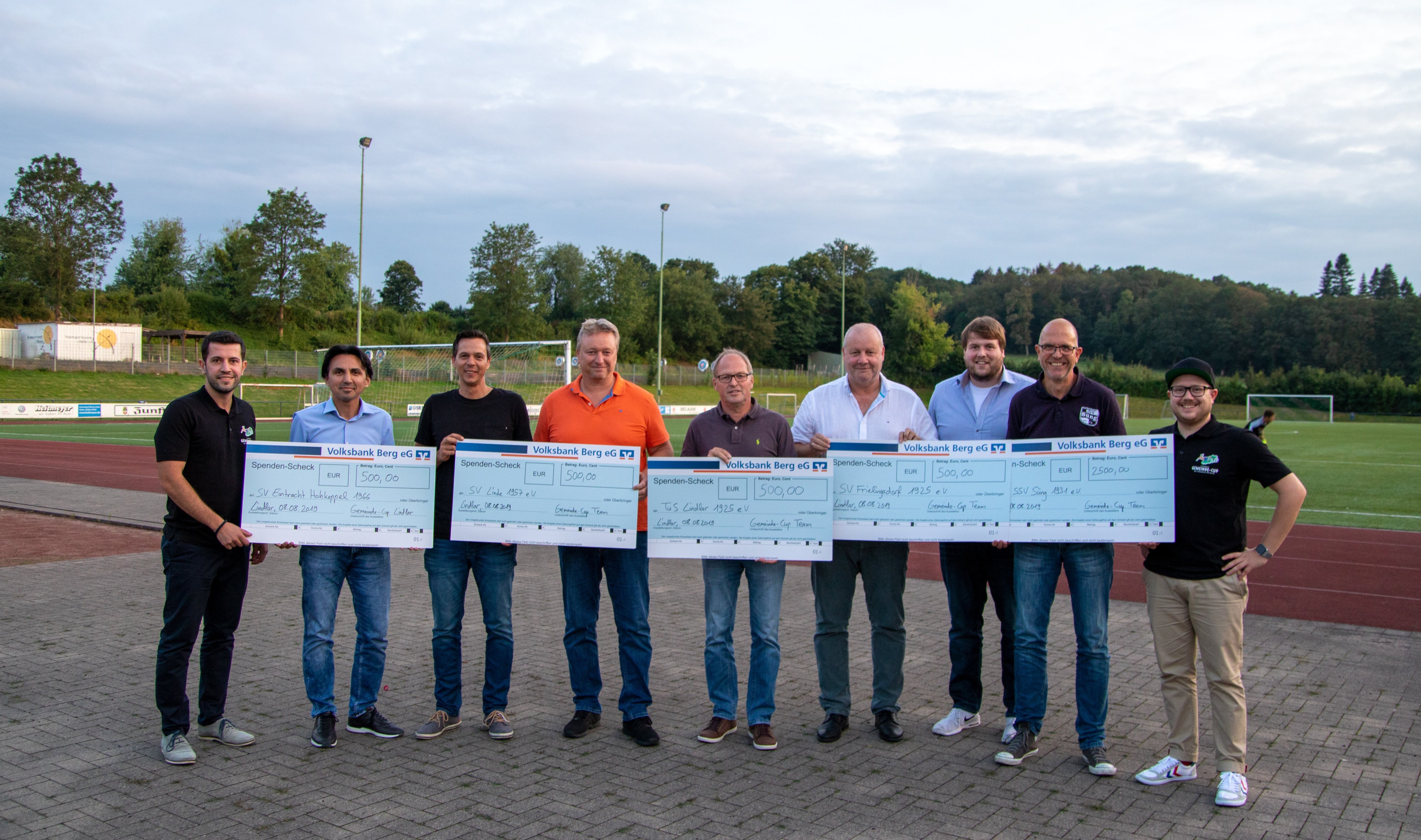 Abschließend gab es die Scheckübergabe, bei der die Vereinsvertreter die Spenden aus dem Sponsorenheft und vom Namensgeber Volksbank Berg entgegennahmen. Gastgeber Süng darf sich über 2.500 € für die Jugendabteilung freuen, die übrigen Vereine erhalten jeweils 500€ für ihre Nachwuchsförderung. Der Gemeinde-Cup Lindlar brachte in den ersten drei Jahren bereits knapp 15.000 € für die Jugendförderung der Gemeindevereine ein. In der letzten Juli-Woche 2020, gastiert der Cup dann in Linde.