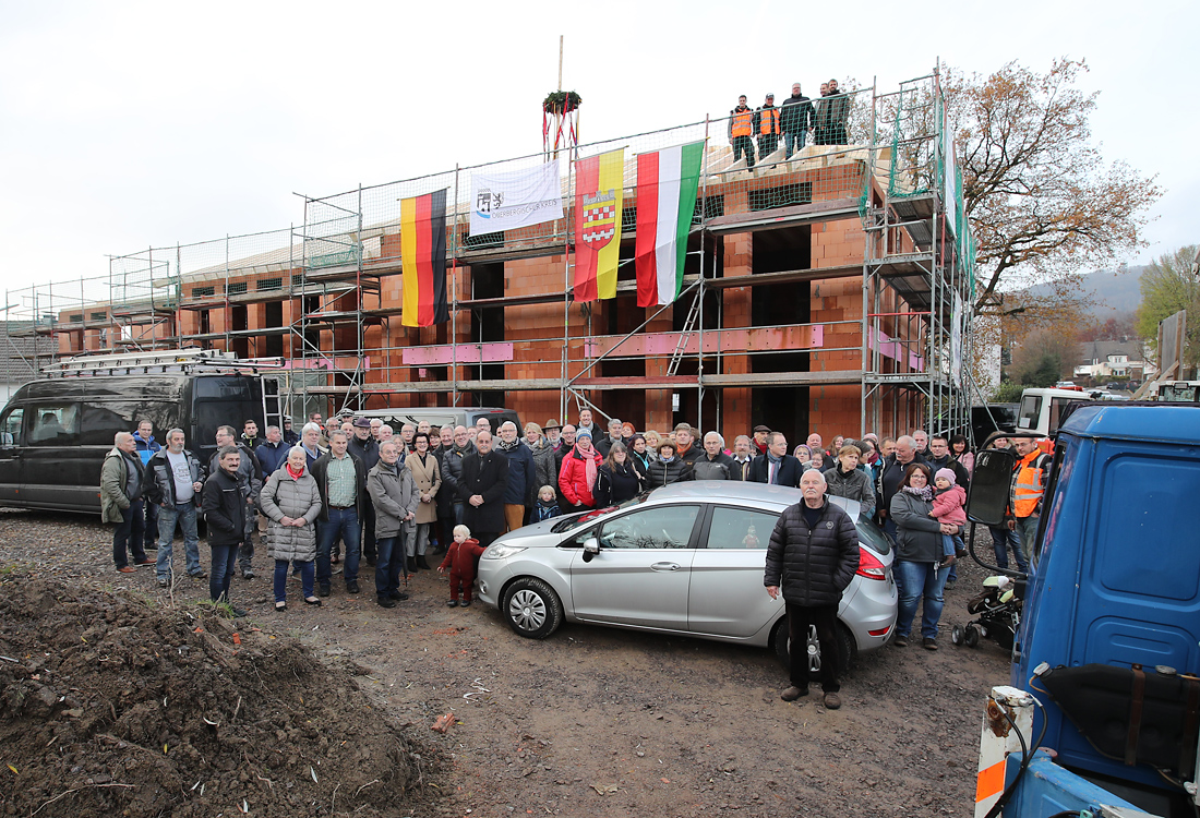 „Full House“ beim Richtfest der neuen Kindertagesstätte in Bergneustadt Henneweide am Freitagnachmittag. Wenn Friedhelm Julius Beucher, Chef des Vereins für soziale Dienste (VfsD) und Präsident des Deutschen Behindertensportverbandes ruft, kommen bekanntlich alle. Beucher hat auch immer einige Asse im Ärmel, die neugierig machen.