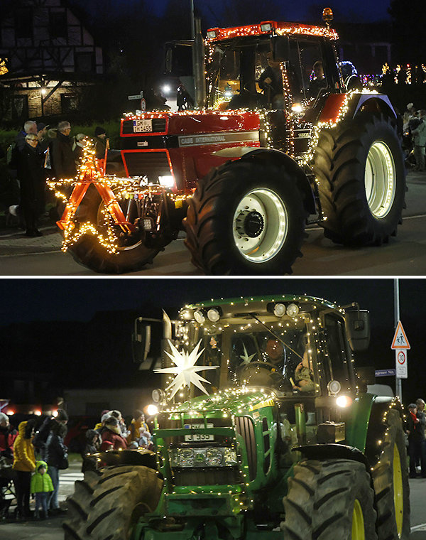 "Gestern war ich in Lohmar, heute bin ich hier und kommende Woche geht es in Overath auf Tour. Es ist toll, dass wir Kinder glücklich machen und parallel auf unsere Existenzängste aufmerksam machen können", erzählte der engagierte Landwirt. Neben ihm sparten auch andere Teilnehmer keineswegs in puncto Kreativität. Viele hatten sich ganze Weihnachtsbäume auf ihre Trecker gebunden. Eines hatten alle gemeinsam: Sie leuchteten und brachten die Gemüter der Zuschauer, die sich an fast jeder Straße in Waldbröl in Scharen angesammelt hatten, in einen freudigen Zustand.